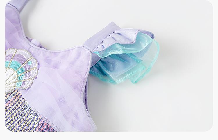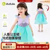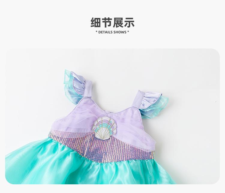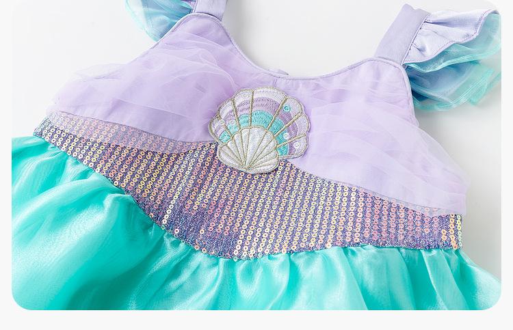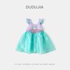 [Princesa Sereia] Vestido Dudu para Meninas Verão Vestido de Princesa de Malha para Bebê Verão Novo Fantasia para Apresentação
