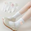 Meias para Meninas Primavera e Verão Meias Finas de Malha Nó de Três Fios Coração Renda Meias de Bebê Doce Laço Meias de Princesa