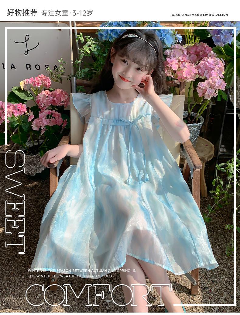 Saia de Menina Verão Estilo Ocidental 2025 Novo Vestido Infantil de Verão Fashion Saia Fina de Princesa para Crianças Grandes