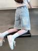 Calças de Renda de Comprimento Médio para Meninas Shorts Elegantes de Comprimento até o Joelho para Crianças Calças Jeans Casuais para Crianças Grandes Verão 2025 Novo Estilo
