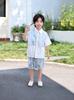 Terno Masculino Estilo Chinês Novo Verão 2025 Novo Conjunto de Duas Peças de Camisa de Manga Curta de Verão Infantil Roupas de Estilo Chinês para Bebê Menino