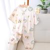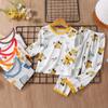 Pijama Infantil Primavera e Verão Meninos e Meninas Algodão Tianzhu Conjunto Roupa de Casa Bebê Respirável Fino Manga Três Quartos Roupa para Ar Condicionado