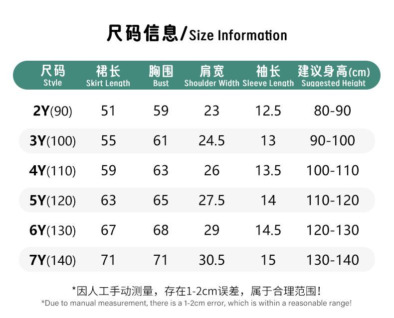 2Y(90cm), 3Y(100cm), 4Y(110cm), 5Y(120cm), 6Y(130cm), 7Y(140cm)