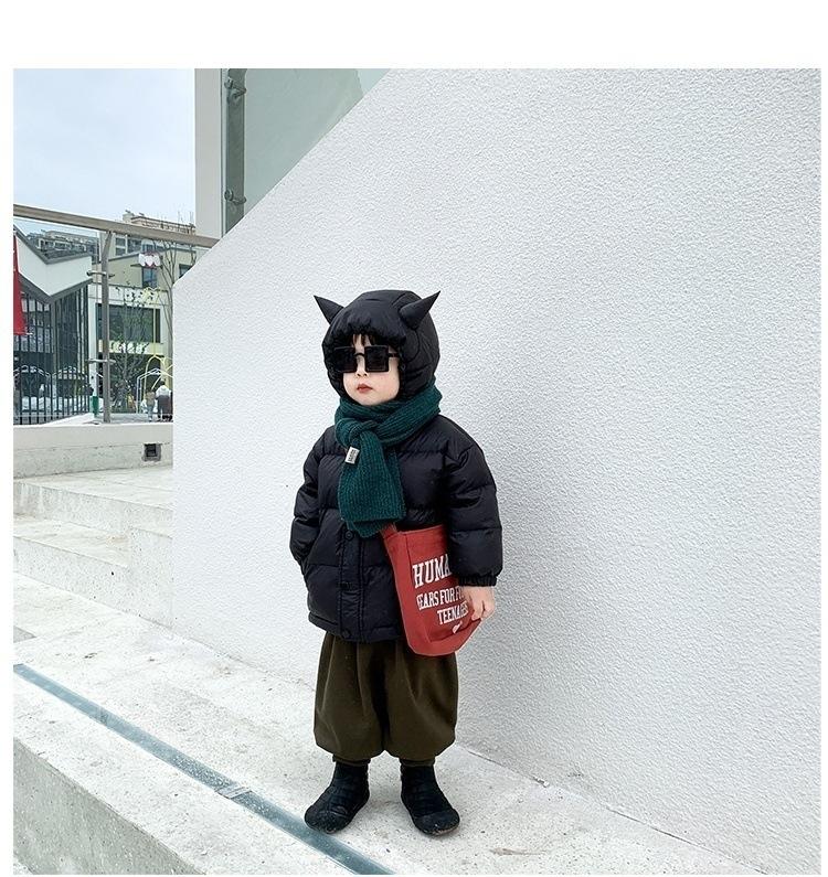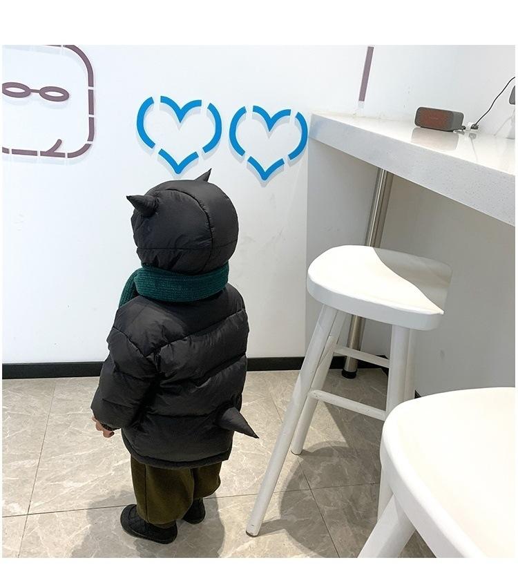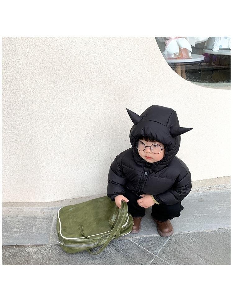 Roupas Infantis 2023 Inverno Novo Estilo Meninos Pequeno Diabo Casacos de Algodão com Penas Roupas de Algodão Quentes para Bebê