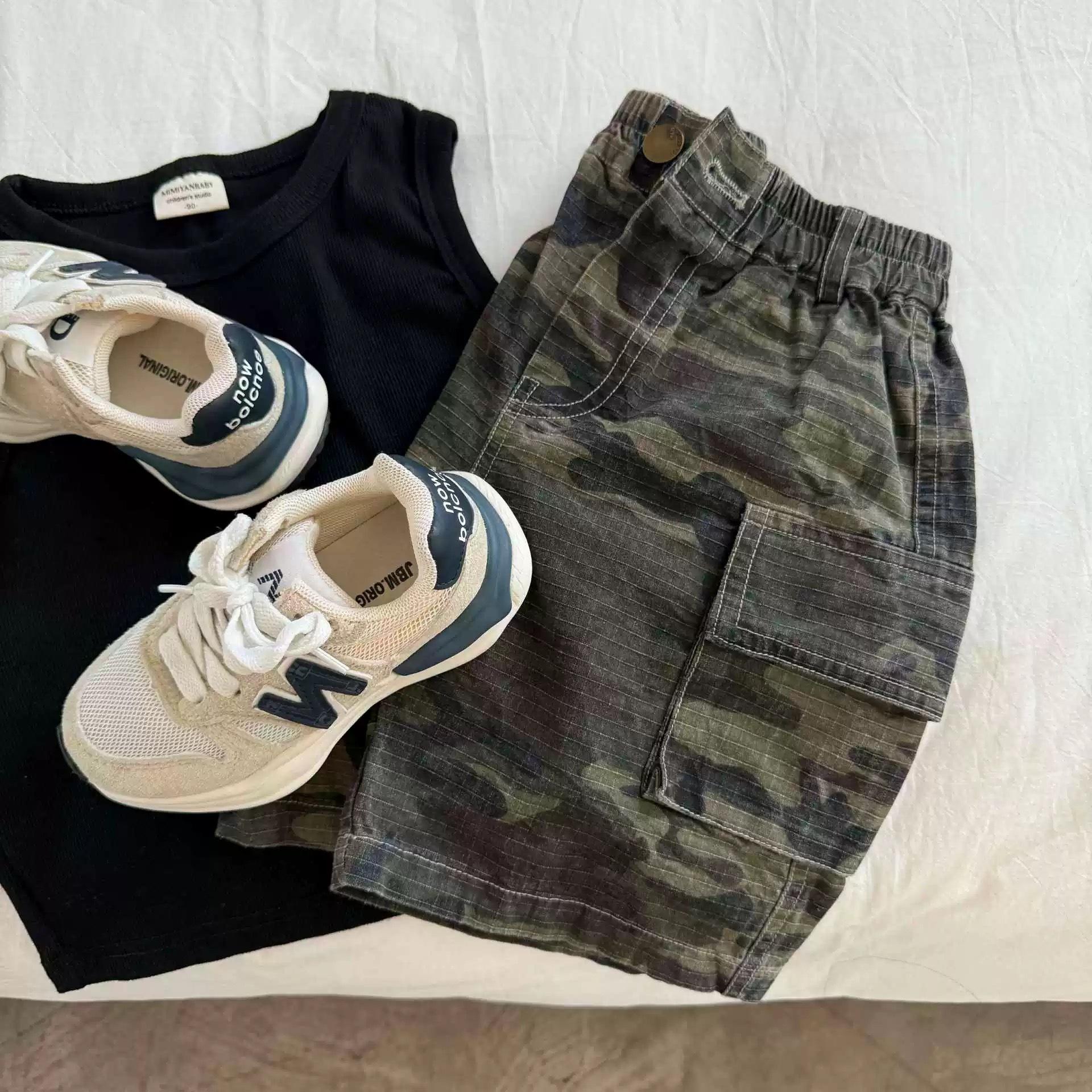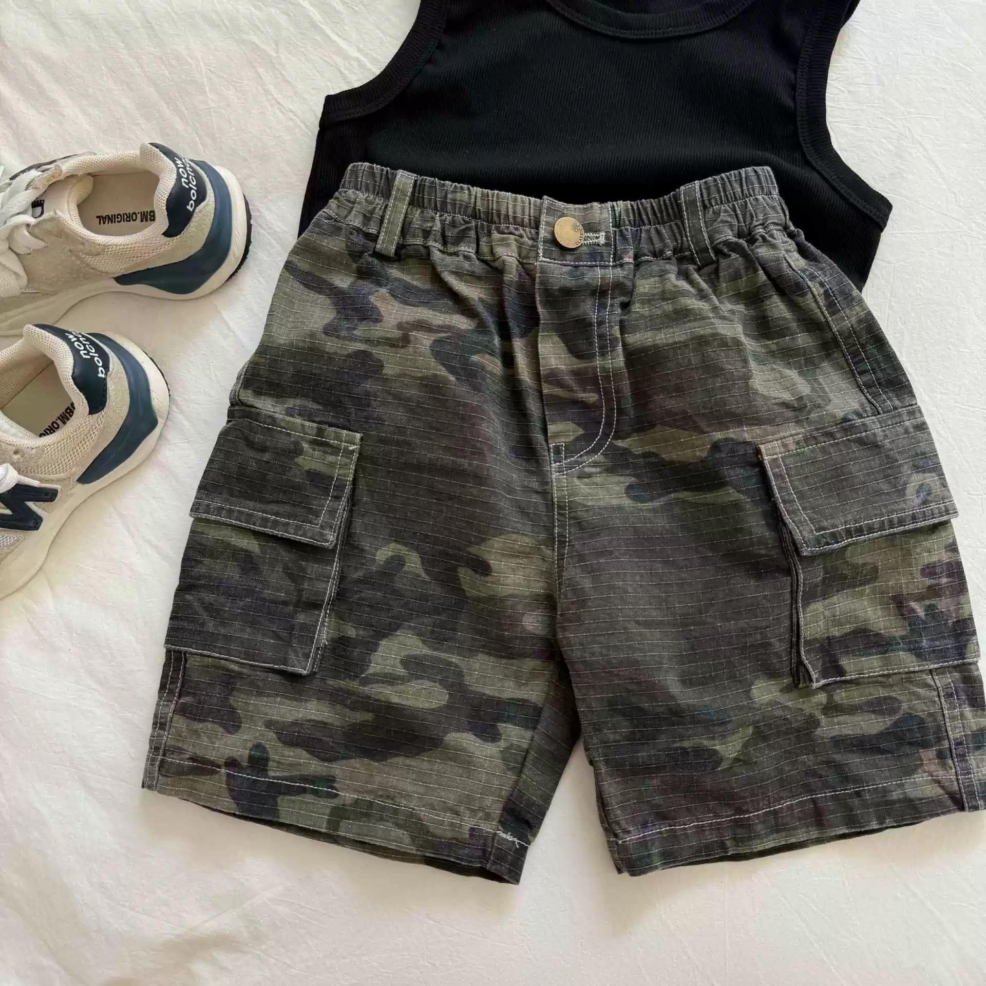 Shorts Infantis 2025 Verão Meninos e Meninas Estilo Japonês Bolso Calças Cargo Bebê Criança Camuflado Moderno Marca Shorts