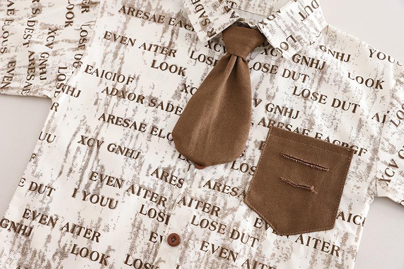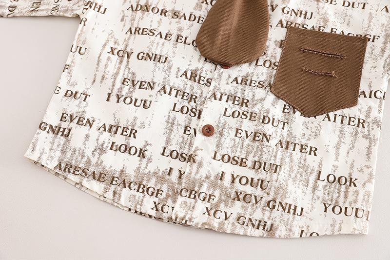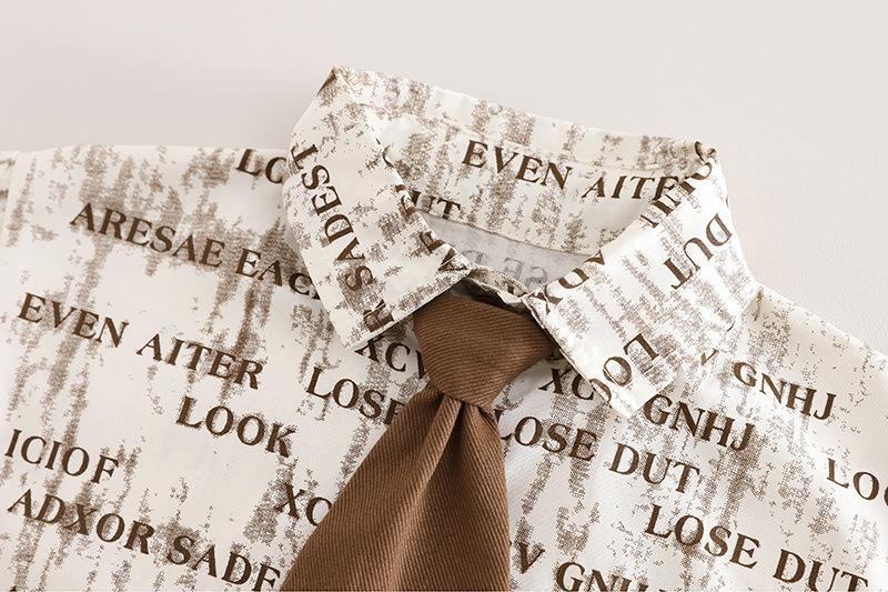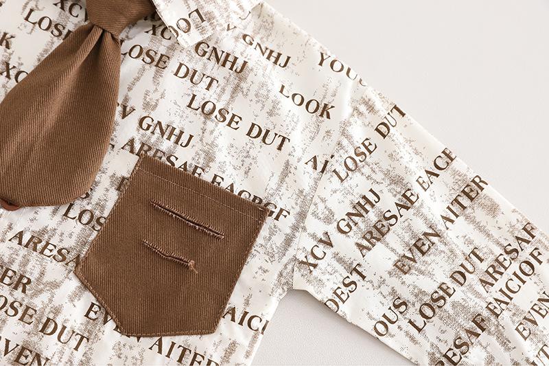 Brown tie english shirt long sleeve two piece set, Black tie english shirt long sleeve two piece set