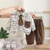Conjunto de Camisa de Outono para Meninos 2025 Novo Estilo Coreano Bonito Primavera e Outono Duas Peças Roupas Infantis Roupas Infantis de Manga Comprida