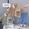 Terno infantil 2025 Nova Moda Bonito Fashionável Infantil Manga Curta Verão Shorts Jeans Conjunto de Verão de Duas Peças para Bebê
