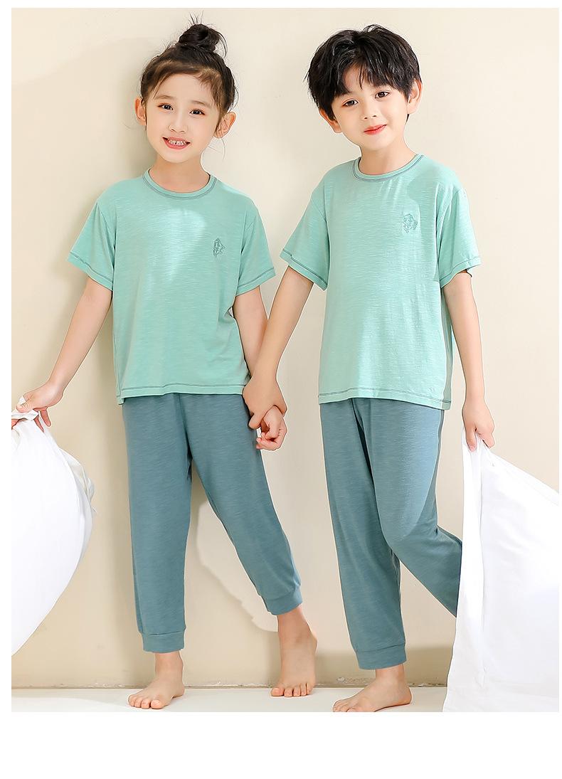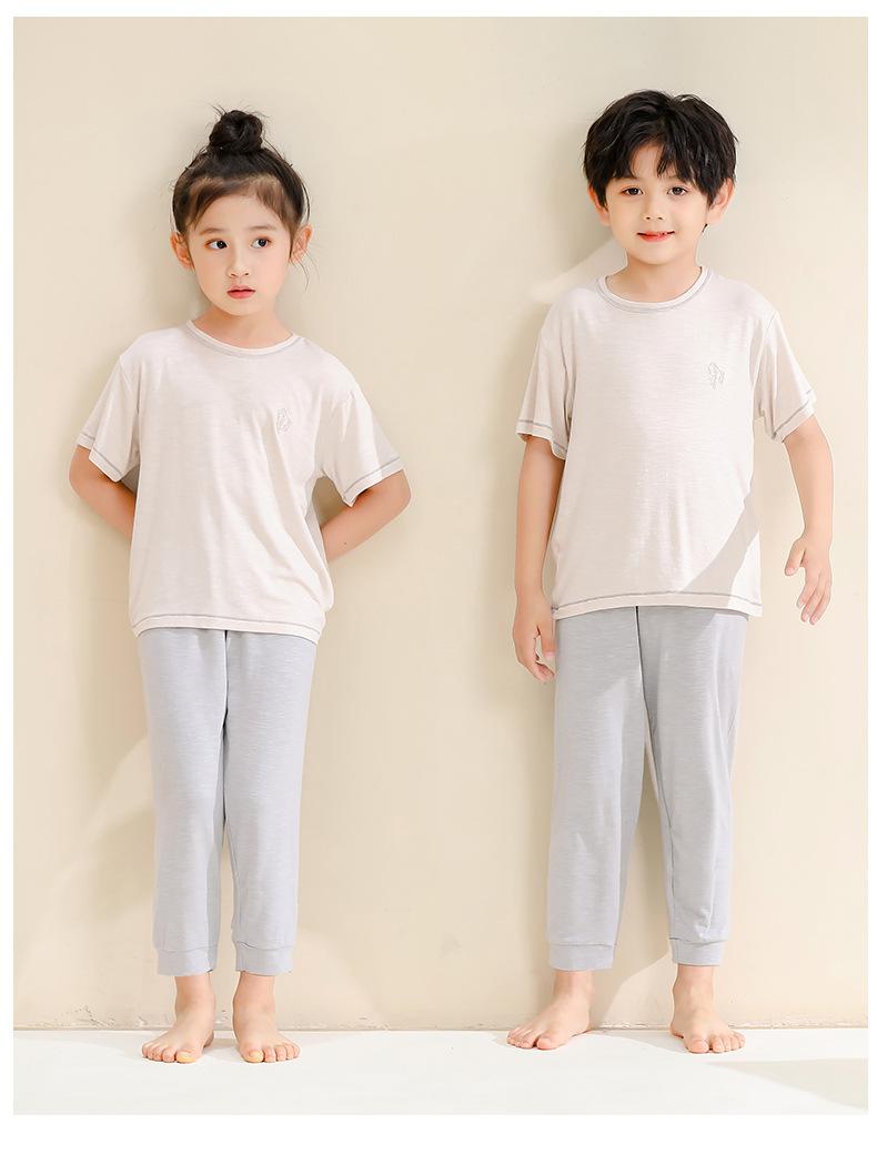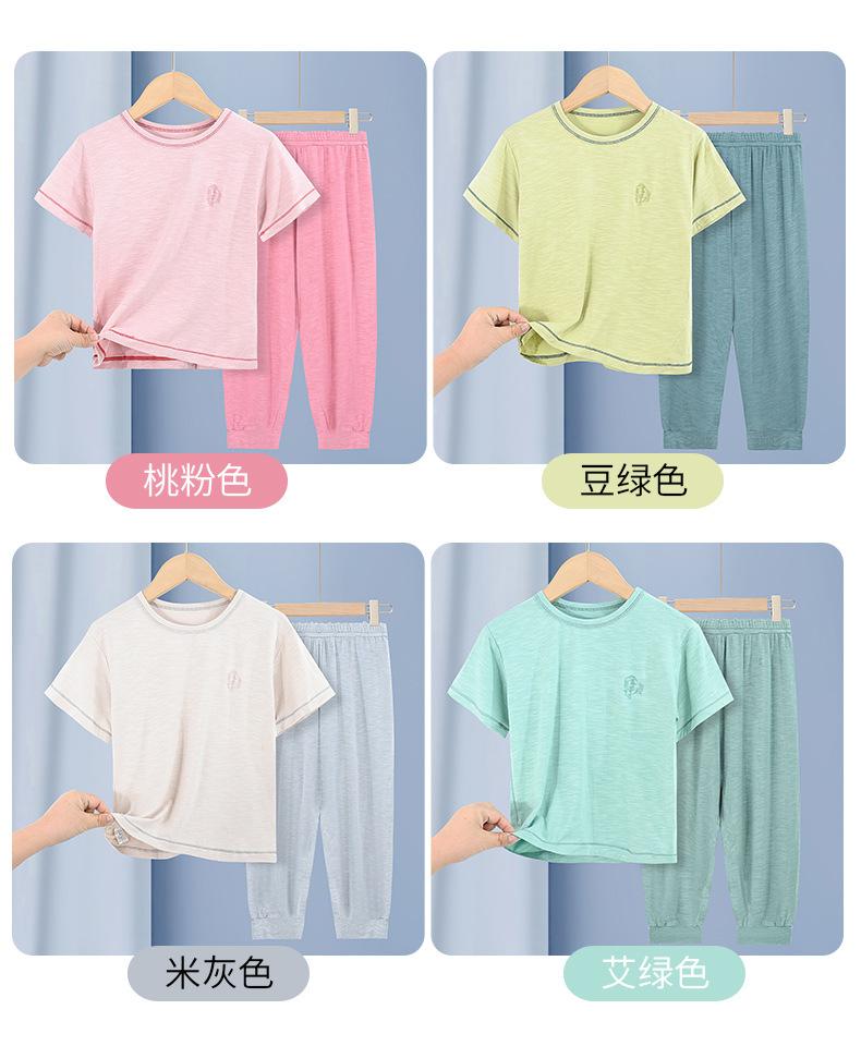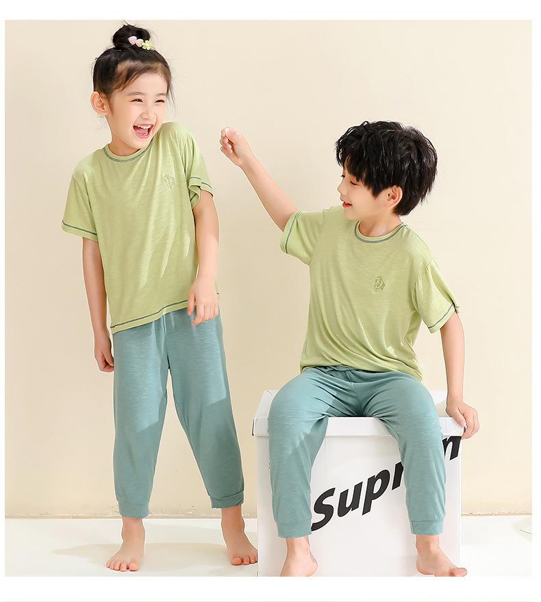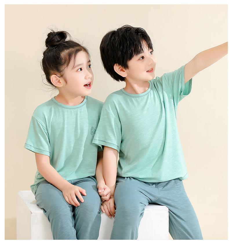Pijamas Infantis Modal Fino Conjuntos de Manga Curta para Meninos Roupas Condicionadas para Meninas Roupas de Verão para Família Infantil Média e Grande Roupas de Casa
