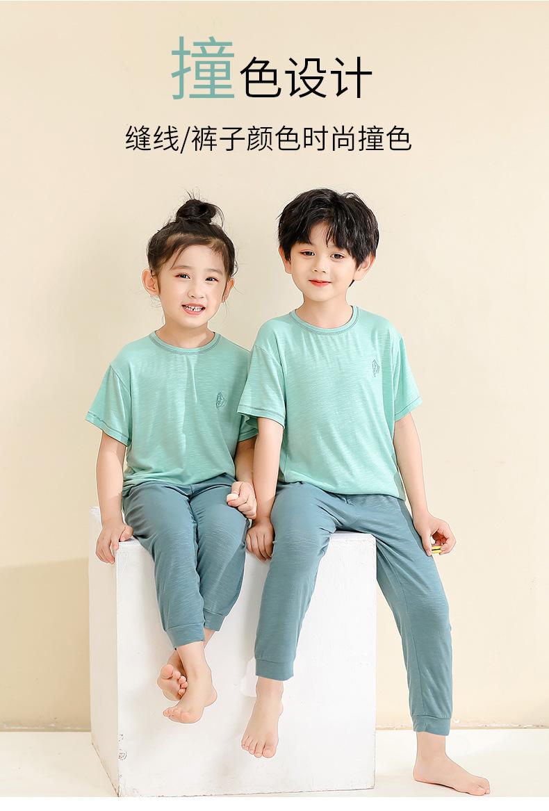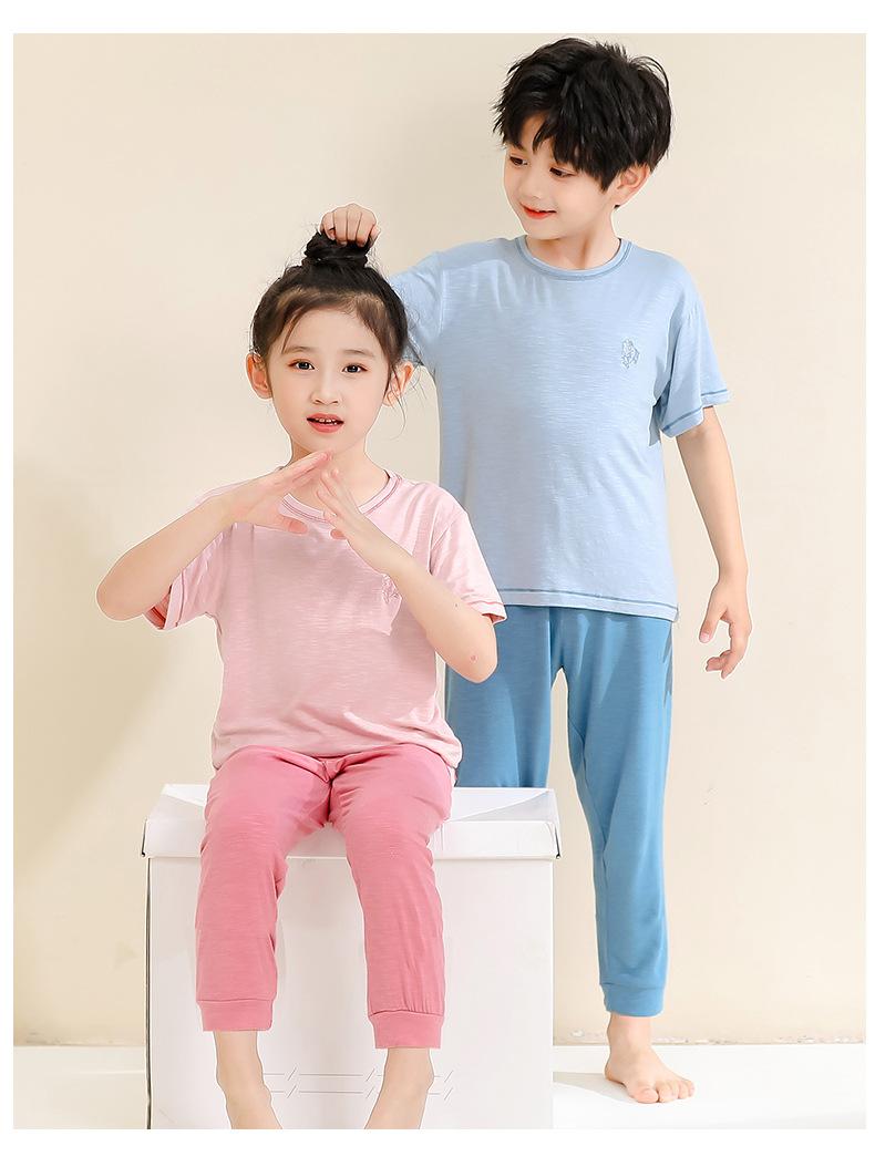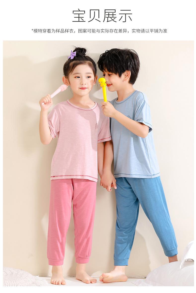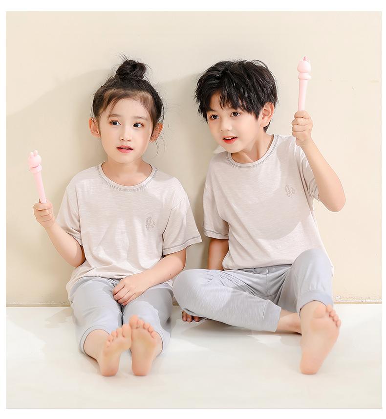 Pijamas Infantis Modal Fino Conjuntos de Manga Curta para Meninos Roupas Condicionadas para Meninas Roupas de Verão para Família Infantil Média e Grande Roupas de Casa