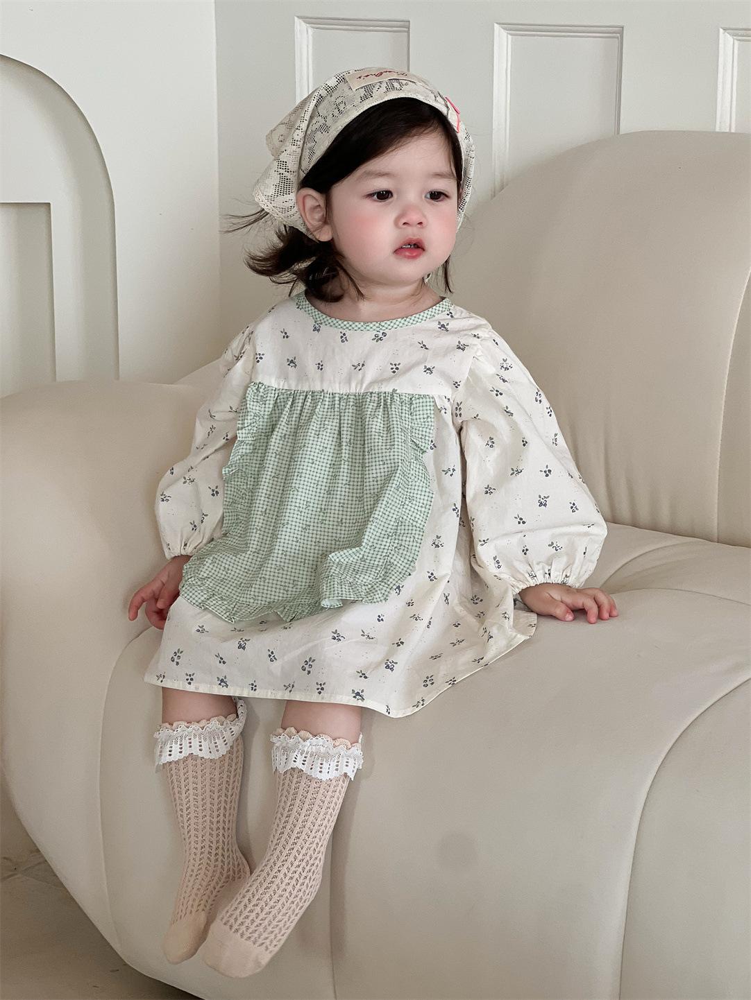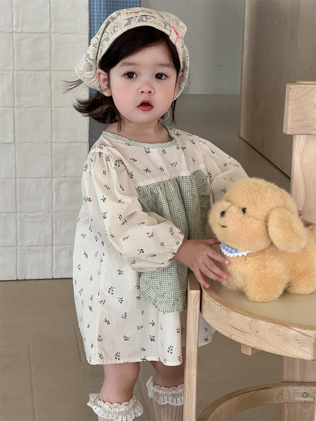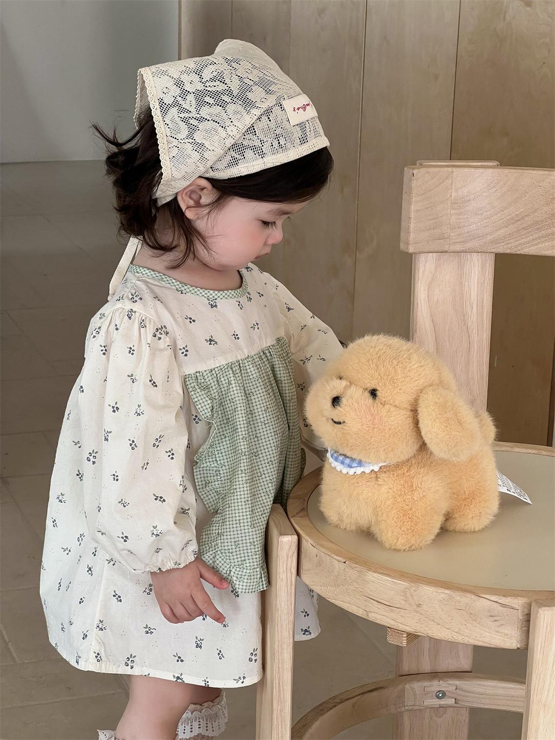 Vestido Outono Manga Longa Meninas Estilo Coreano Roupas Infantis Roupas de Bebê Vestido de Princesa Outono 2025 Novo Vestido Infantil