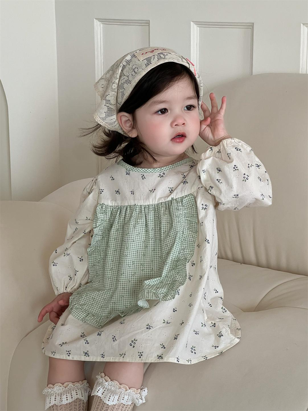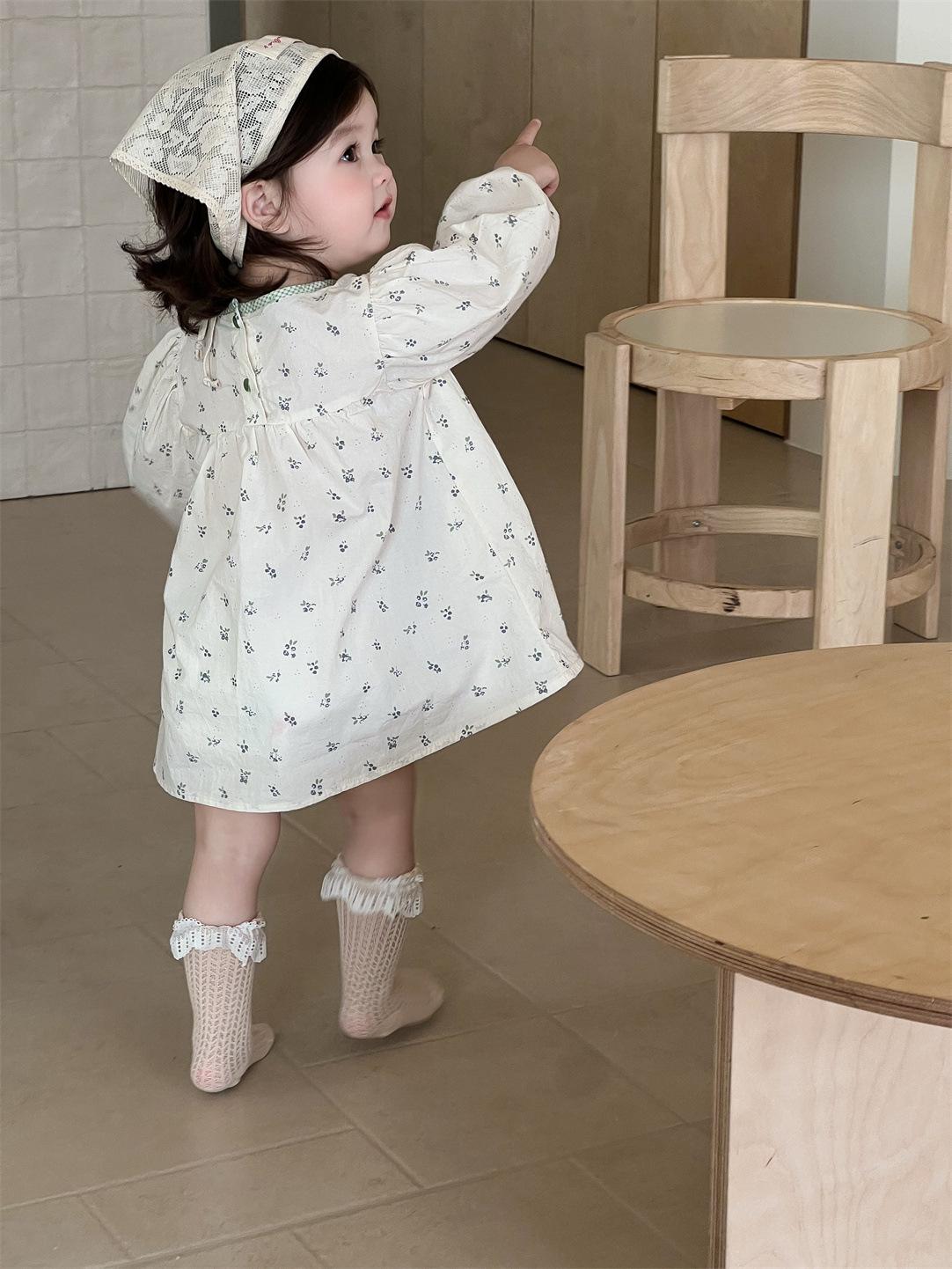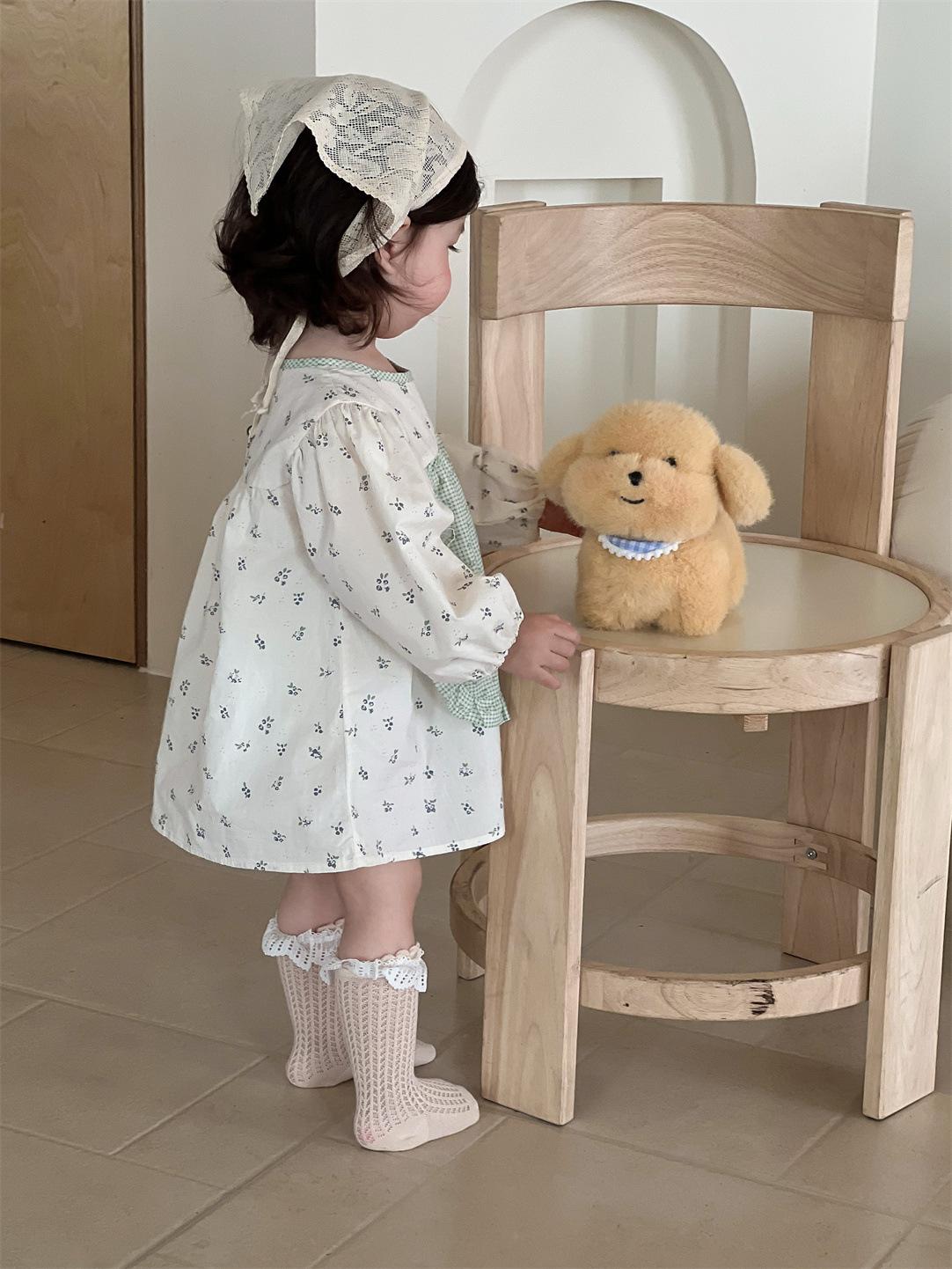 Vestido Outono Manga Longa Meninas Estilo Coreano Roupas Infantis Roupas de Bebê Vestido de Princesa Outono 2025 Novo Vestido Infantil