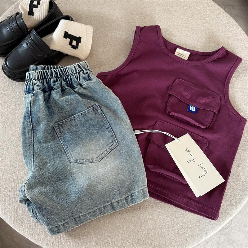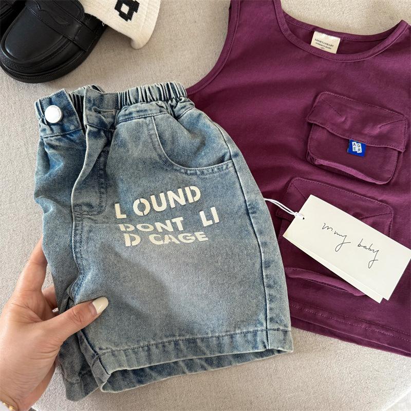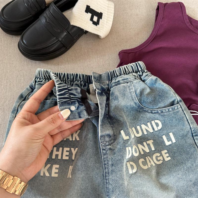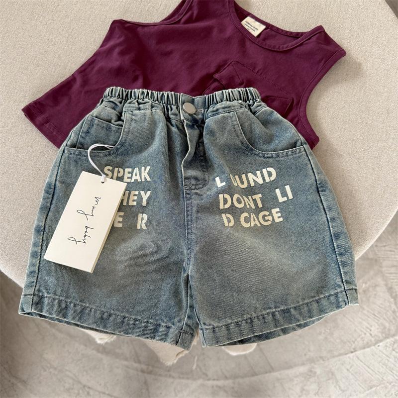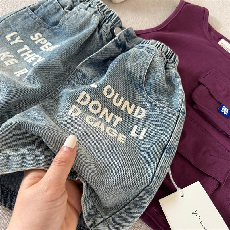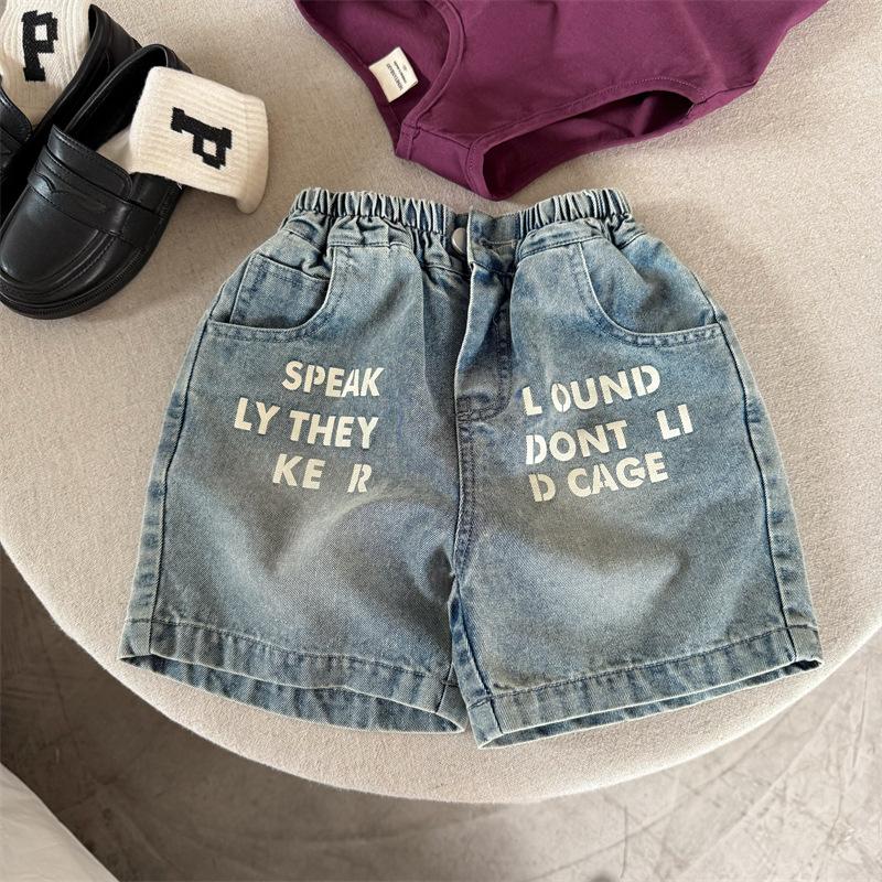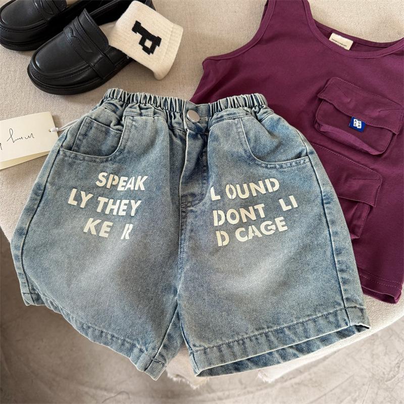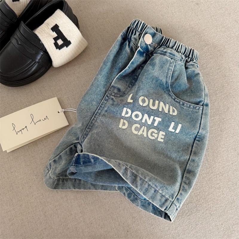 Shorts Infantis 2025 Olhar Vesgo Verão Novo Meninos e Meninas Carta Jeans Shorts Bebê Calças Estilo Coreano Moderno