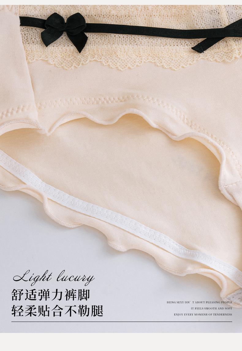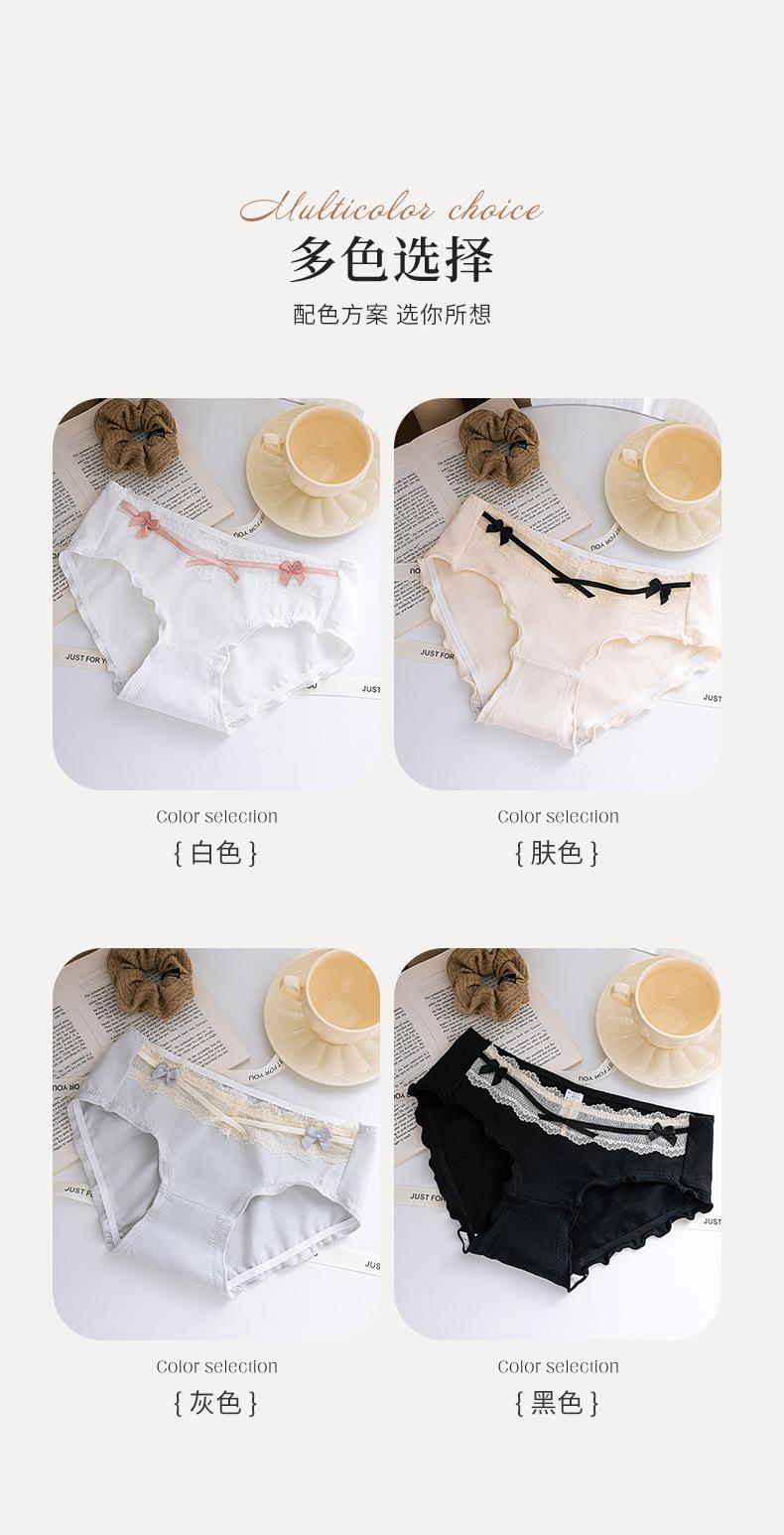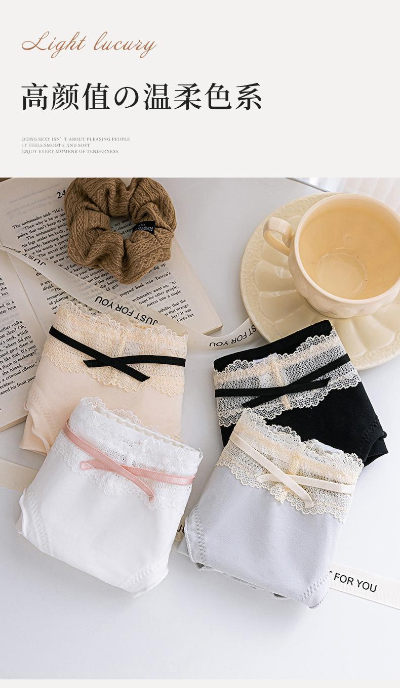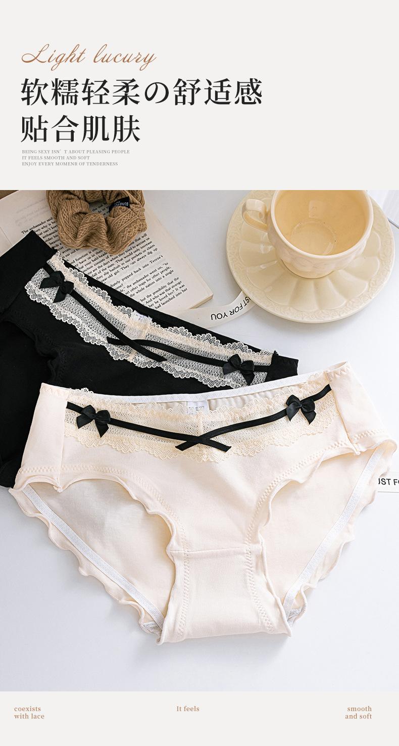 Roupa Íntima de Algodão Puro Japonês Feminina Cintura Média Contraste Laço Algodão Respirável Crotch Antibacteriano Calcinhas de Alto Valor Doce Menina