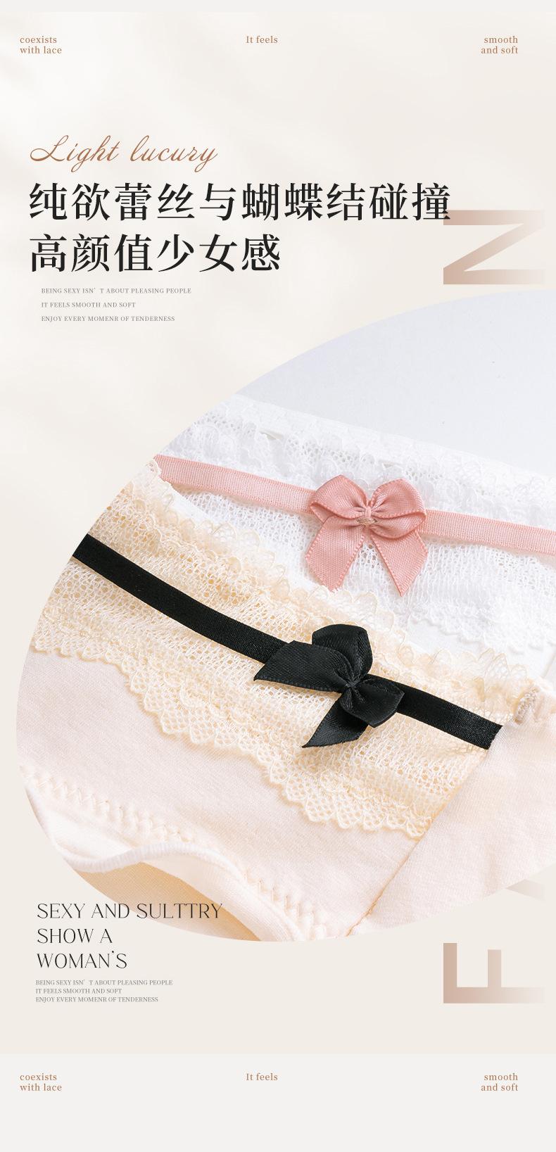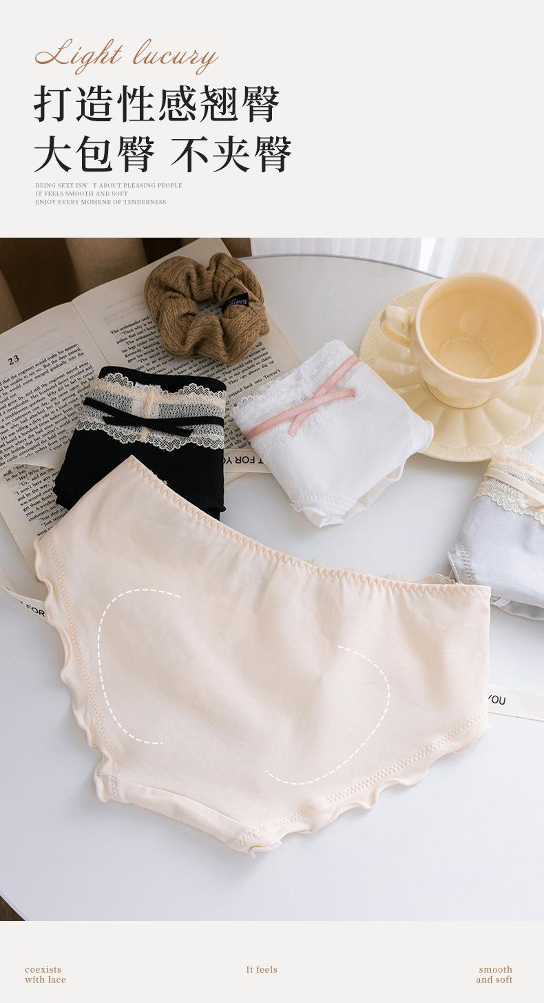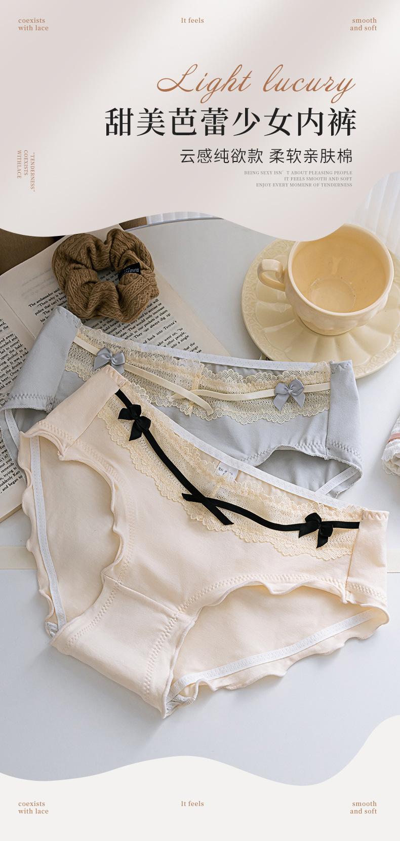 Roupa Íntima de Algodão Puro Japonês Feminina Cintura Média Contraste Laço Algodão Respirável Crotch Antibacteriano Calcinhas de Alto Valor Doce Menina