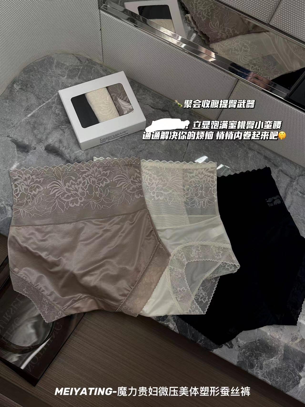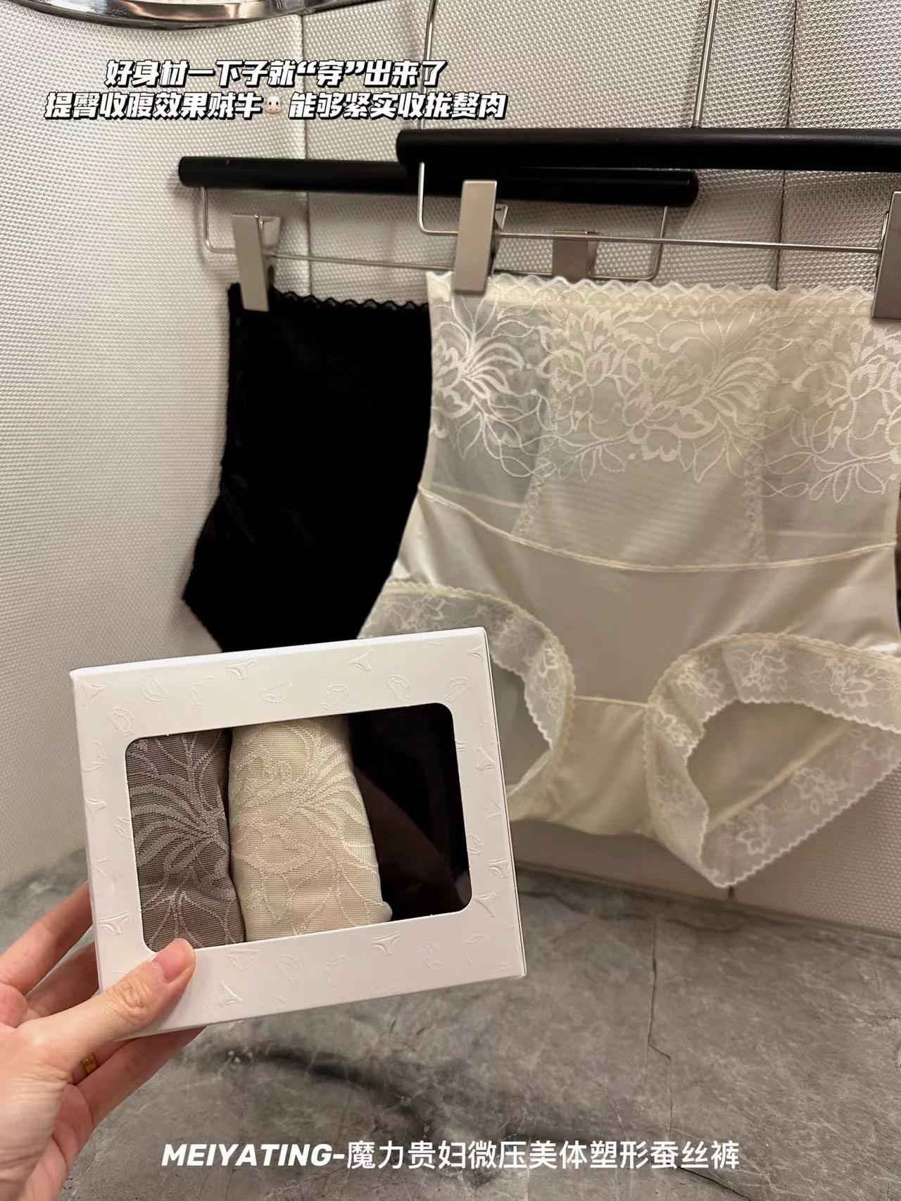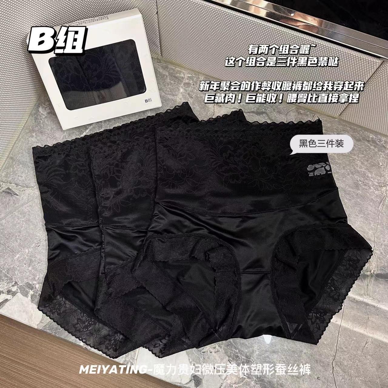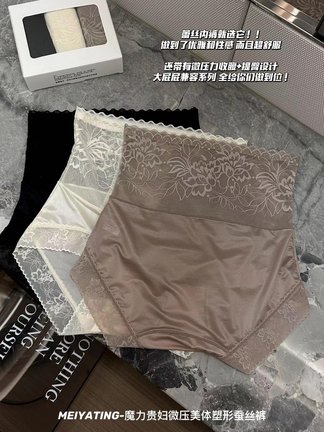 Calcinhas Populares Magic Lady Renda Seda Cetim Controle de Barriga Respiráveis Levanta Bumbum Virilha Seda Amora Cintura Alta Redutoras mm para Mulheres