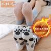 Meias de Dormir Lã Coral Quente Forradas com Lã Espessas Meias de Chão Desenho Animado Estilo Japonês Cano Médio Meias Felpudas de Toalha Meias de Lua de Pelúcia