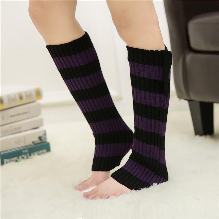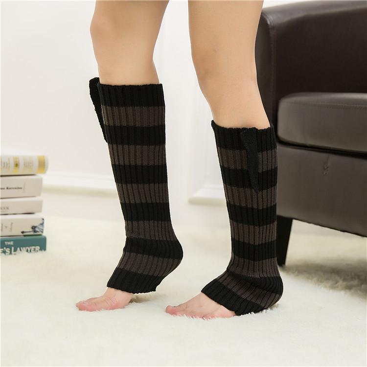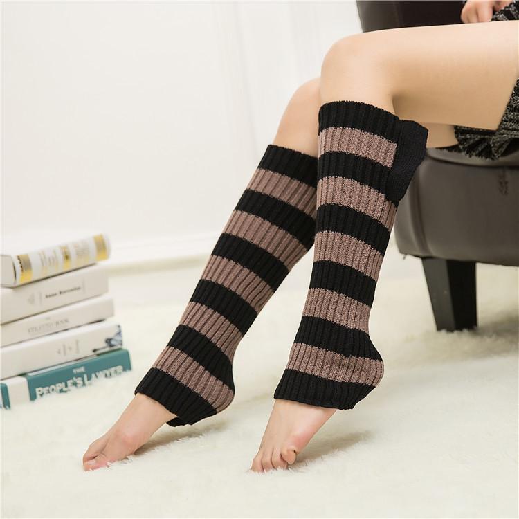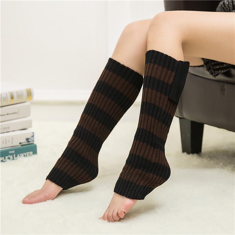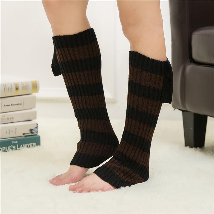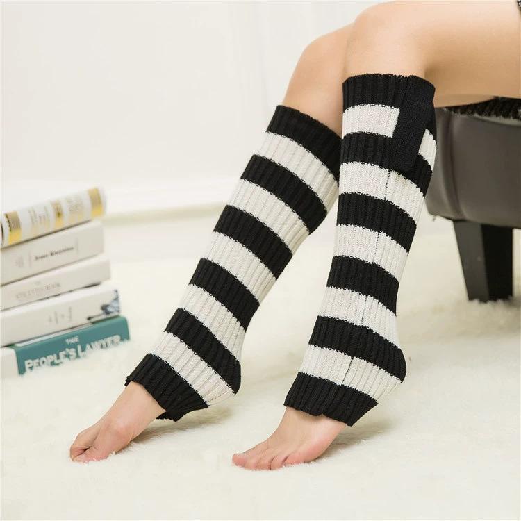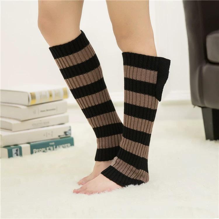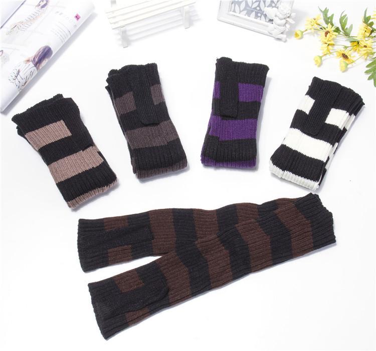 Outono e Inverno Meias Quentes Femininas Estilo Coreano Acrílico Bicolor Joelheiras Polainas Meias Listradas de Comprimento Médio Meias Felpudas Fabricante Atacado