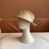 Chapéu de Palha de Aba Reta com Fita Francesa Estilo Coreano Verão Sombreamento Feminino Protetor Solar Respirável Litoral Praia Viagem Chapéu de Praia Moderno
