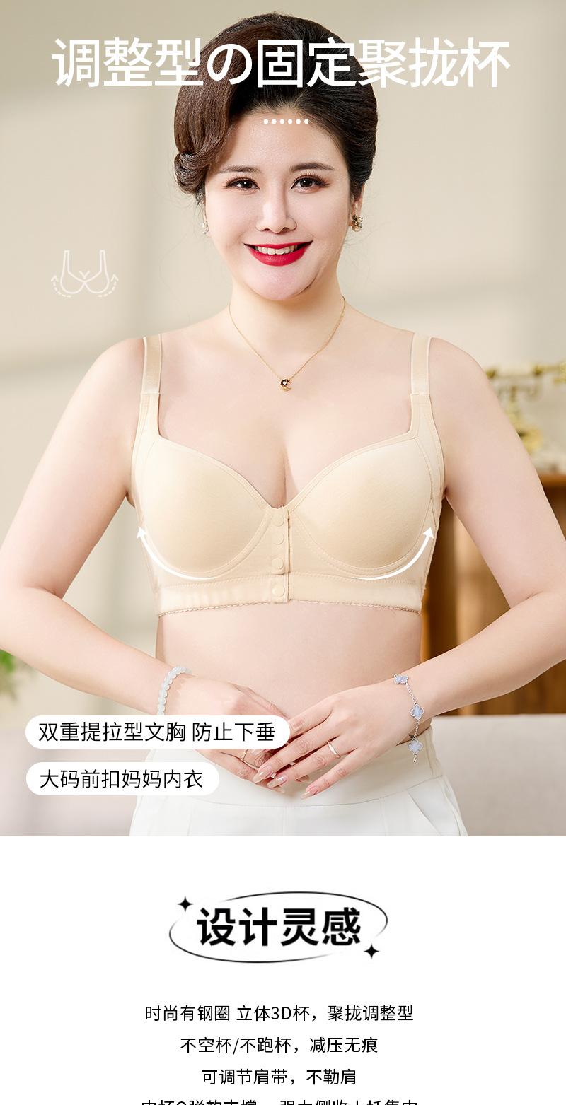 Novo Estilo Calcinha com Fivela Frontal Brilhante Feminina Bojo de Espuma Alças Ajustáveis Sutiã para Meia Idade Plus Size Roupa Íntima Feminina