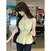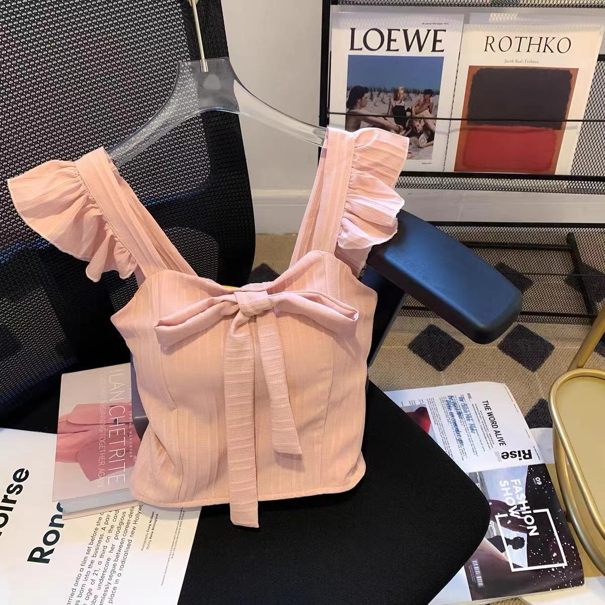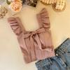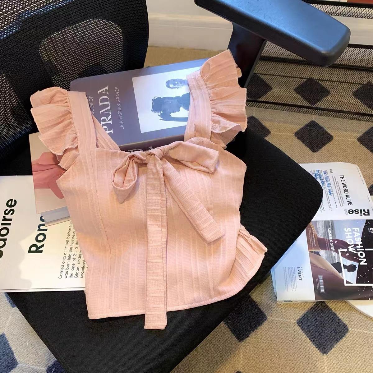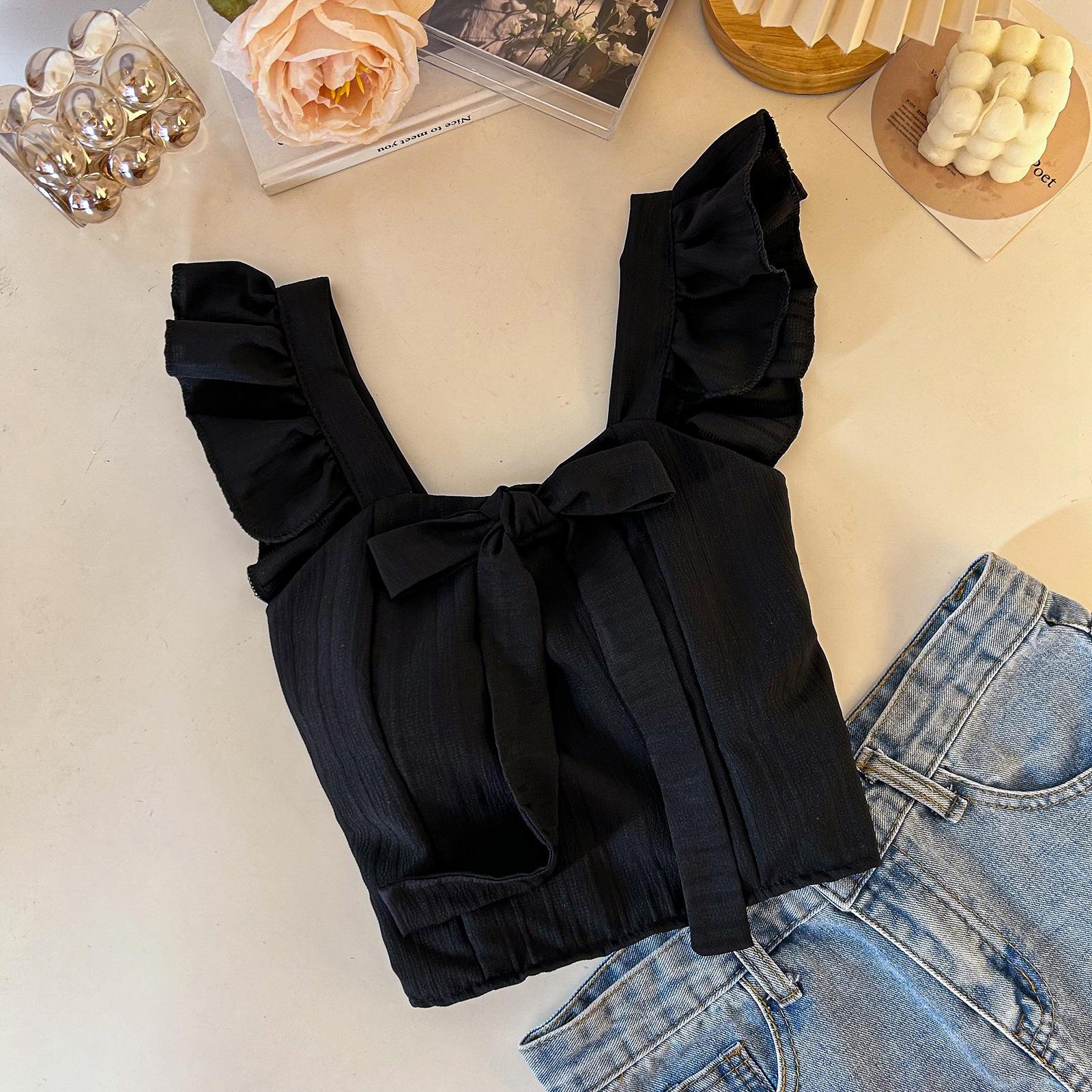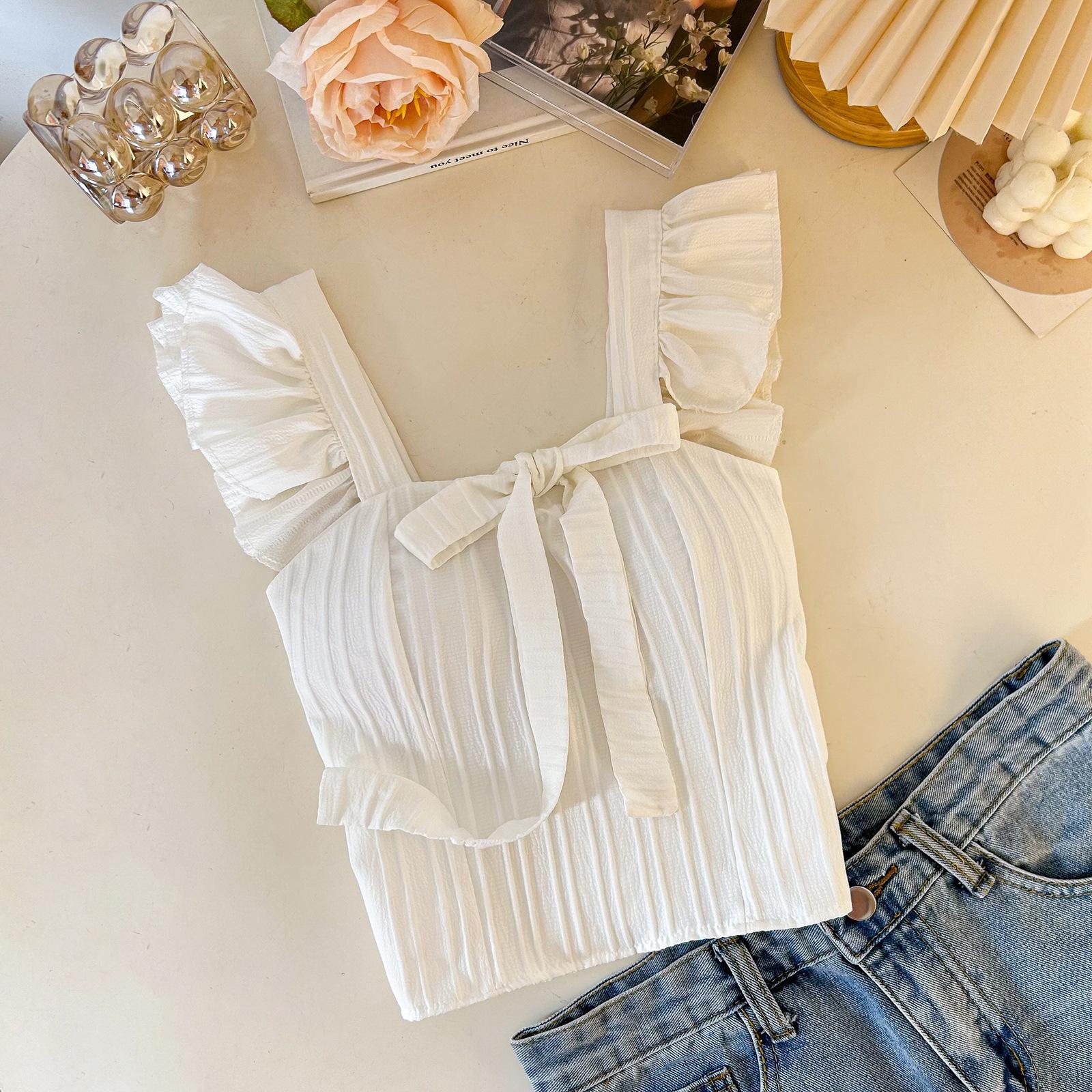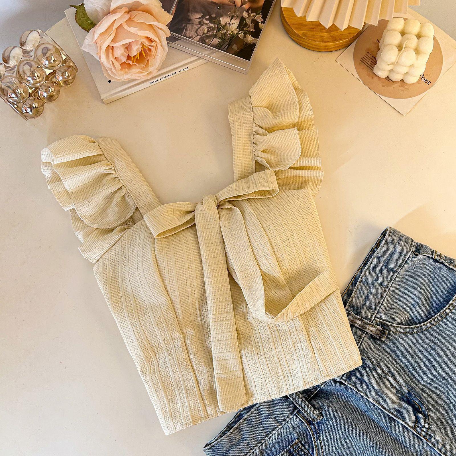 Top Cropped Babados Francês Verão Novo Feminino Slim-Fit Emagrecimento Curto Uso Interno e Externo Temperado Alça Sem Mangas