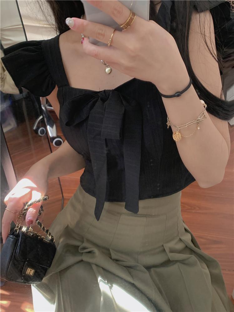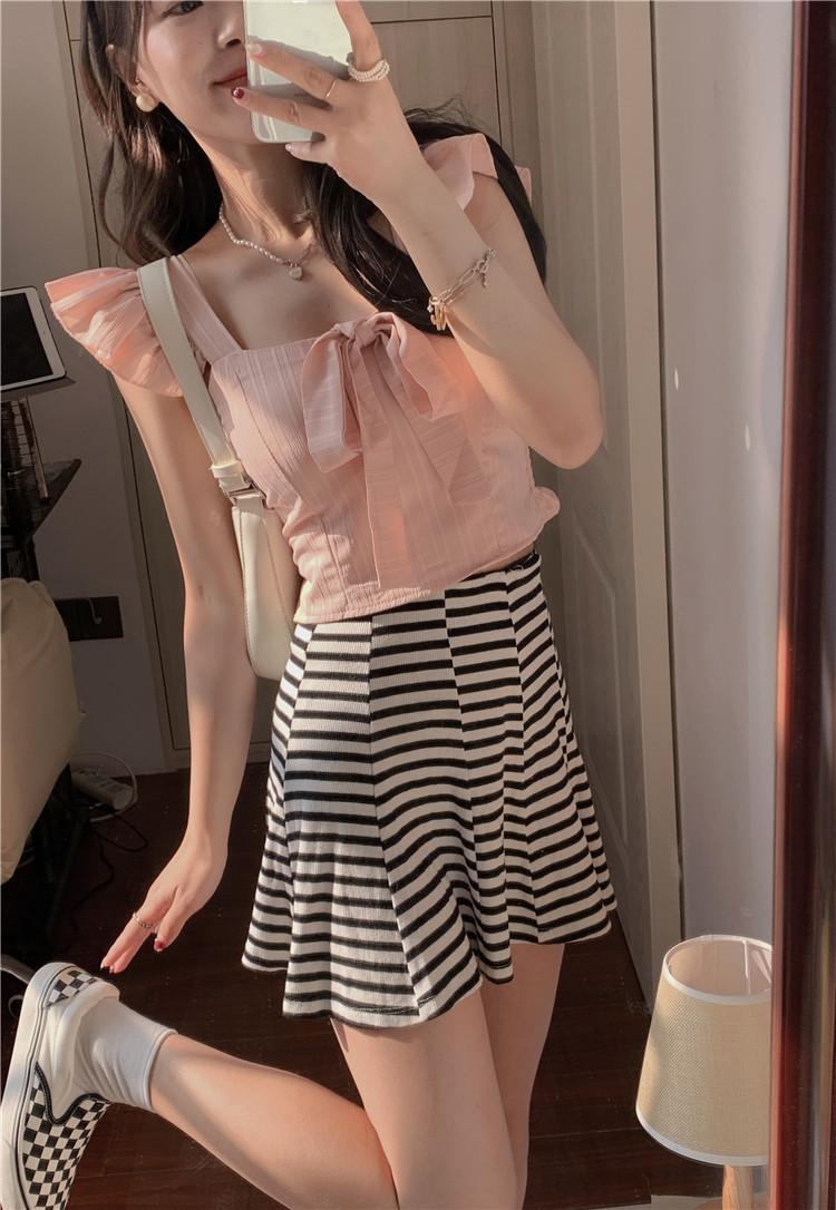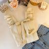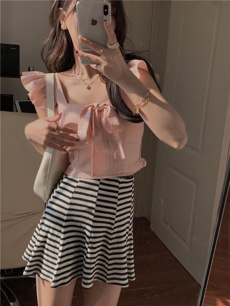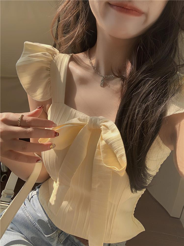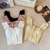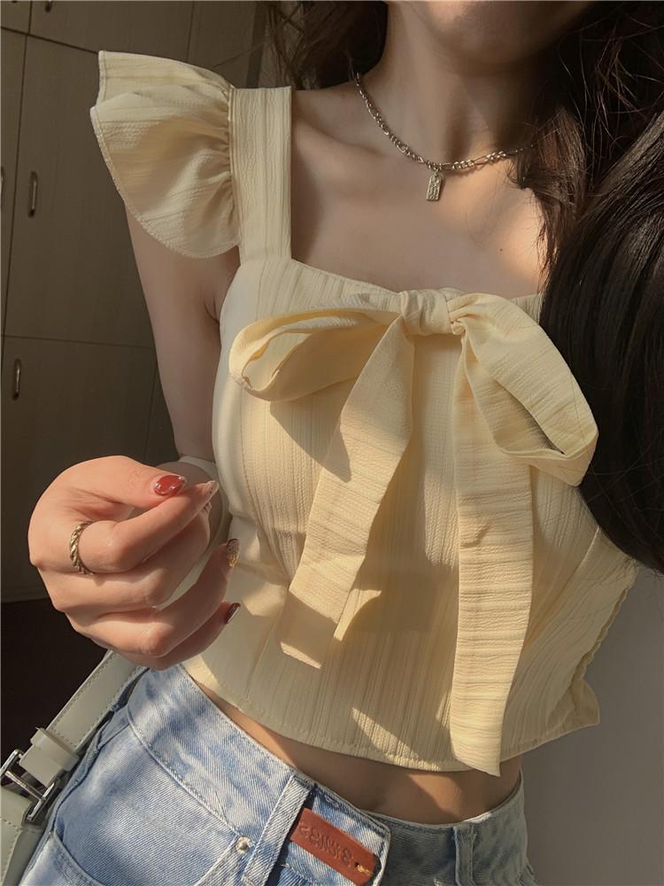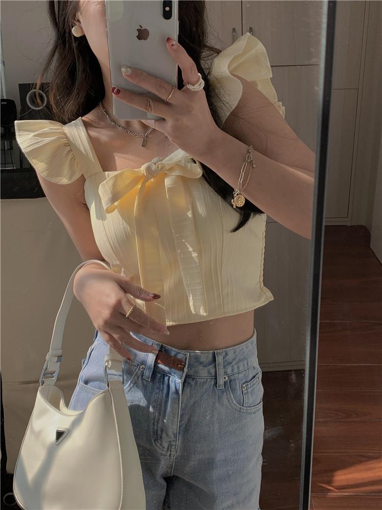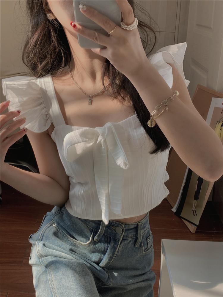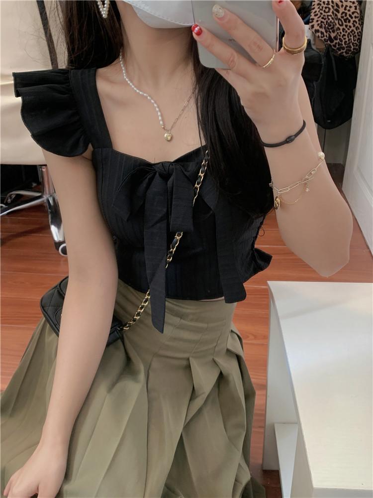 Top Cropped Babados Francês Verão Novo Feminino Slim-Fit Emagrecimento Curto Uso Interno e Externo Temperado Alça Sem Mangas