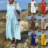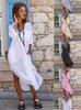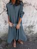 Transfronteiriço 2025 Novo Europeu e Americano Primavera e Verão Estilo Europeu e Americano Solto Casual Manga Média Vestido Camisa Algodão e Linho Mulher
