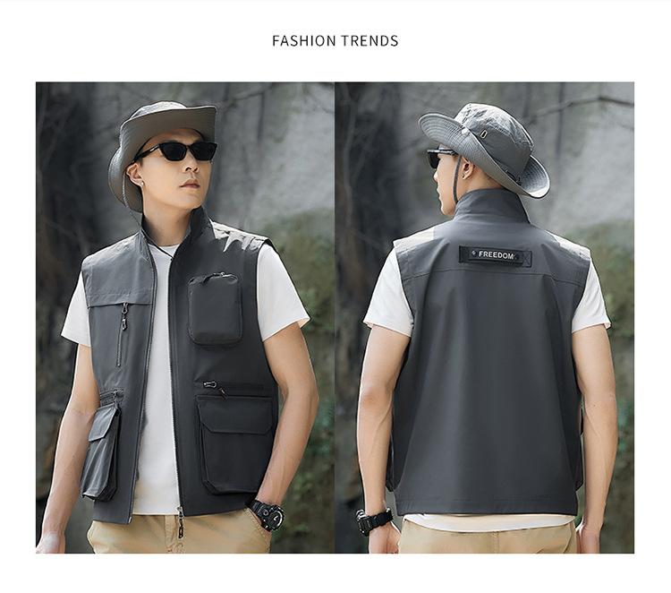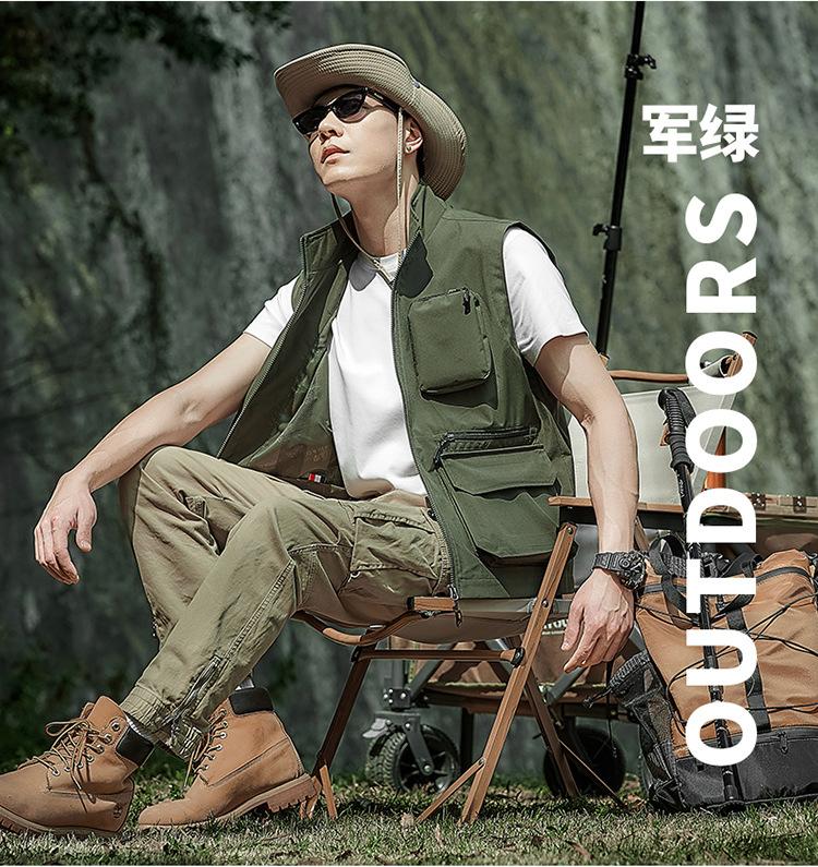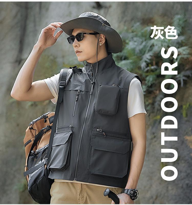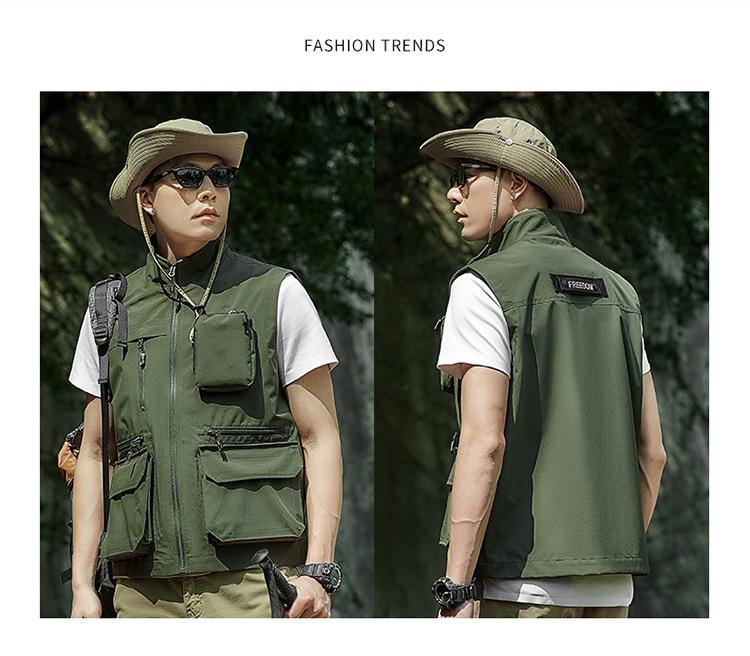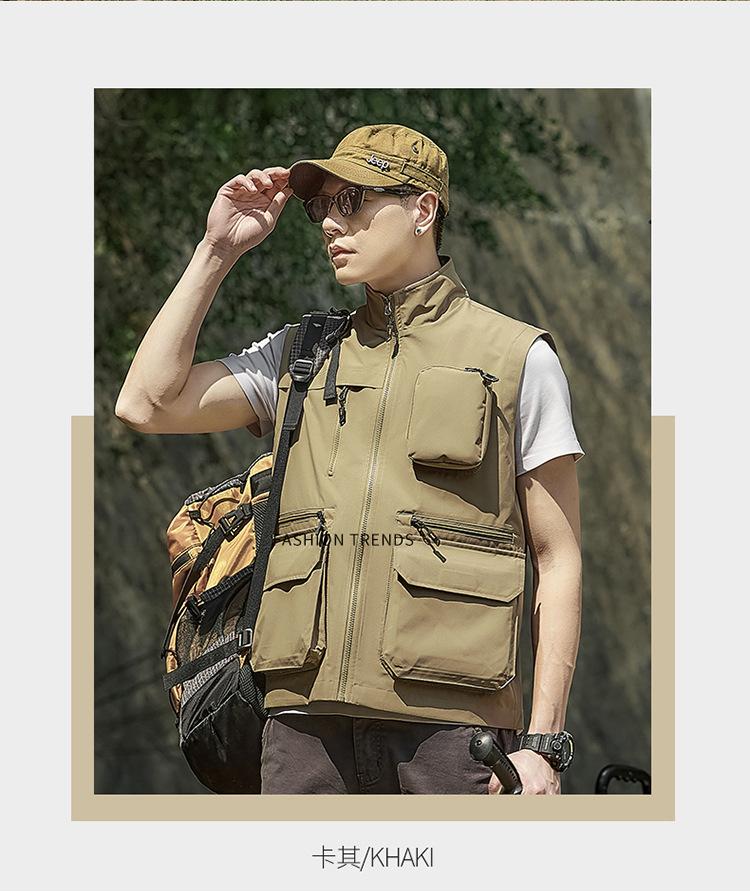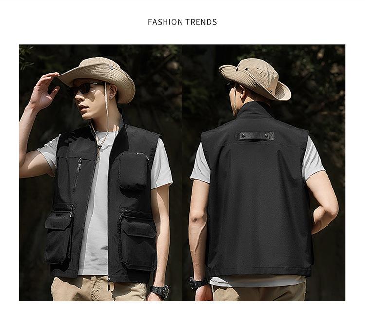 Novo Colete Multifuncional Multibolsos de Primavera para Exterior Masculino Casual para Pesca Fotografia Colete Gola Alta 1118