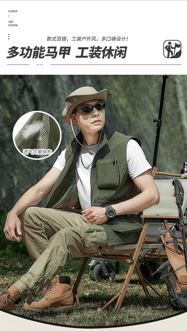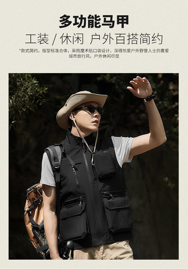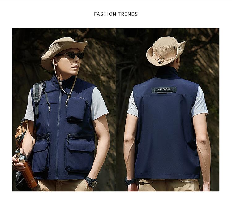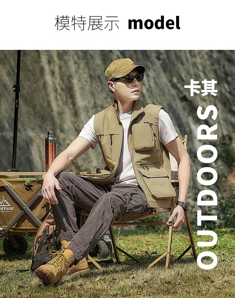Novo Colete Multifuncional Multibolsos de Primavera para Exterior Masculino Casual para Pesca Fotografia Colete Gola Alta 1118