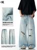 Jeans Retrô Americano 11Kn Azul Lavado Rasgado Reto para Homens e Mulheres Cleanfit Solto Emagrecimento Look Calças Casuais