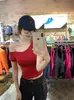 Camiseta Feminina de Verão com Ombro Vermelho, Manga Curta, Novo Design, Nicho, Ajuste Slim, Emagrecimento, Spice Girls, Top Curto
