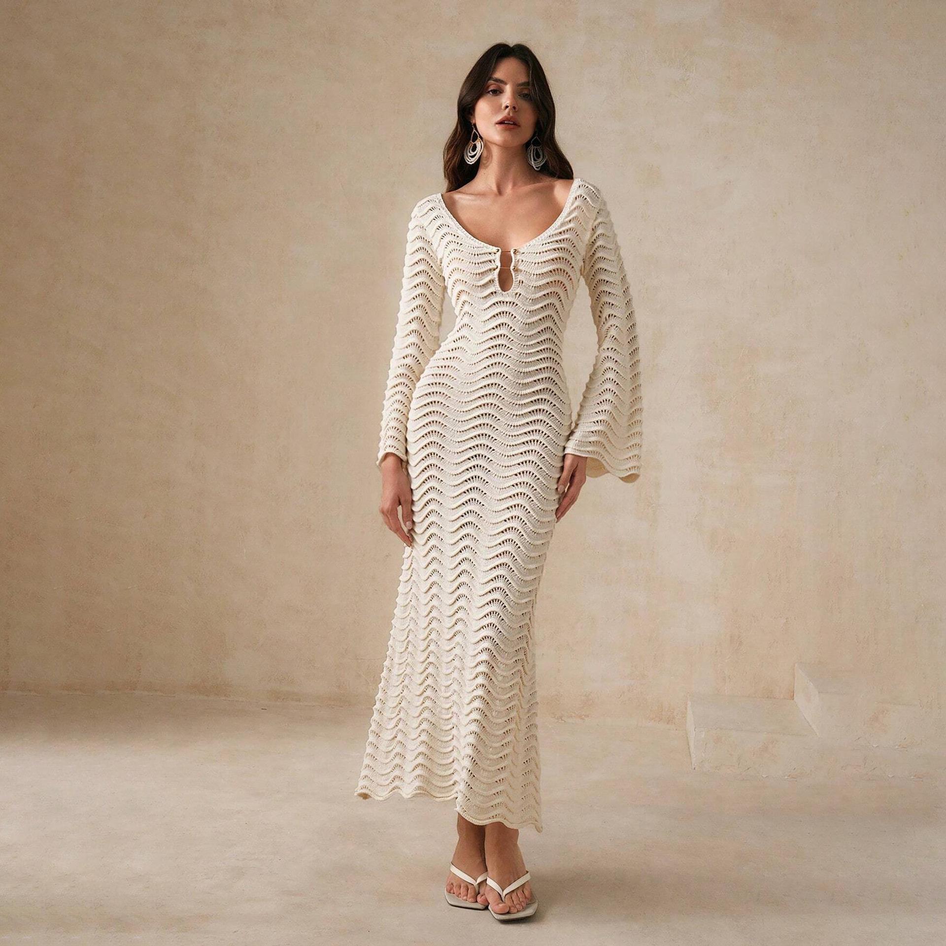 Novo produto em 2025!! Vestido de Praia Europeu e Americano Vestido Feminino Cor Sólida Sexy Tricotado Praia Biquíni Maiô Vestido Feminino