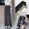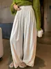 Calças Retas Casuais com Renda para Mulheres Verão 2025 Novo Estilo Cor Contrastante Cintura Elástica Soltas Emagrecedoras Versátil Calças de Perna Larga