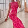 2024 Comércio exterior europeu e americano novo ebay Amazon mais vendido vermelho sexy decote V profundo vestido manga longa