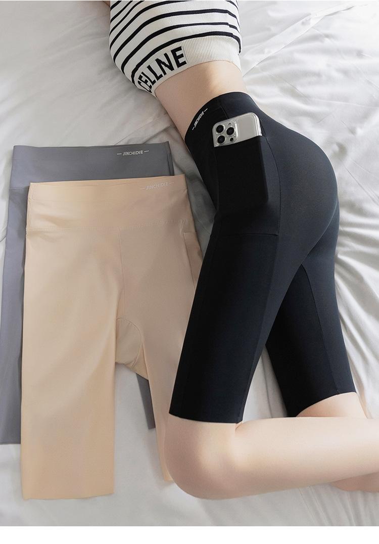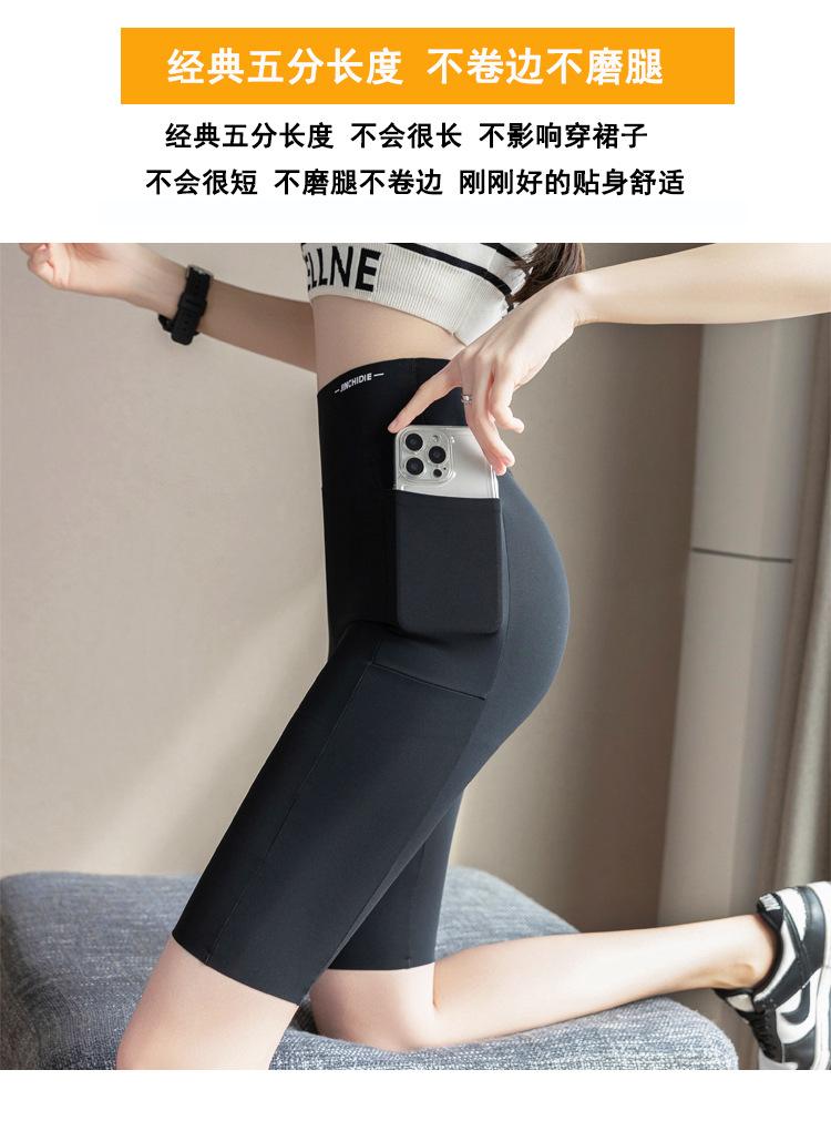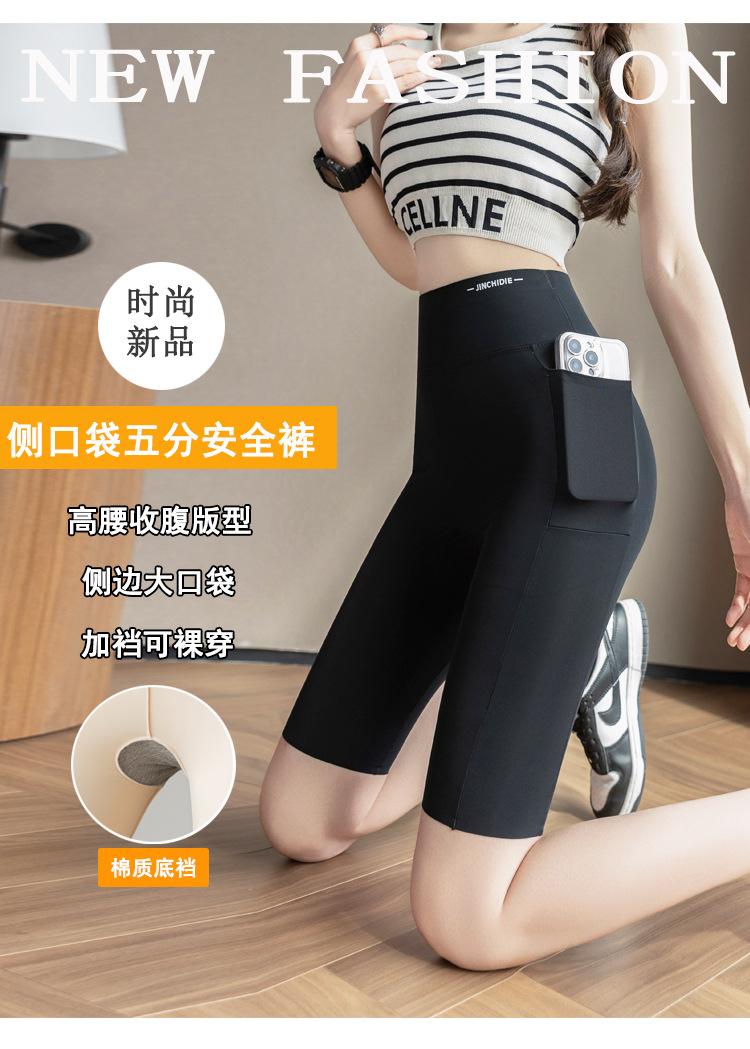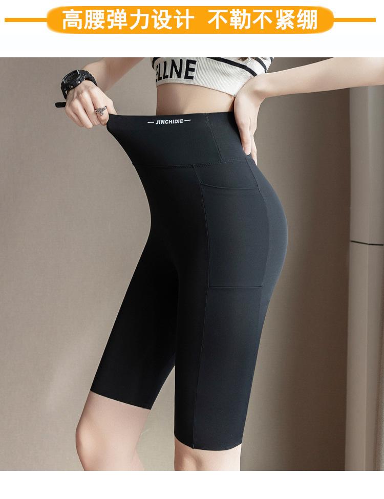 Calças de segurança de cintura alta e virilha verão sem enrolar cinco pontos bolso leggings sem costura elástico calças tubarão plus size 200kg
