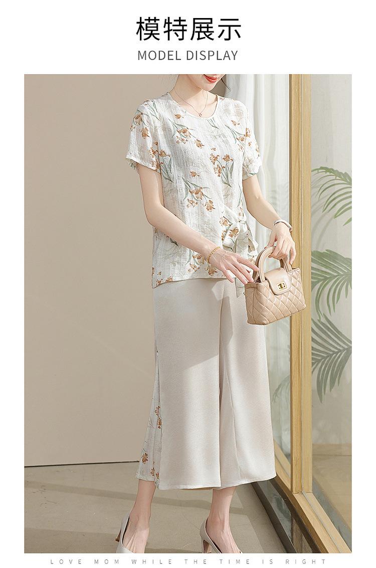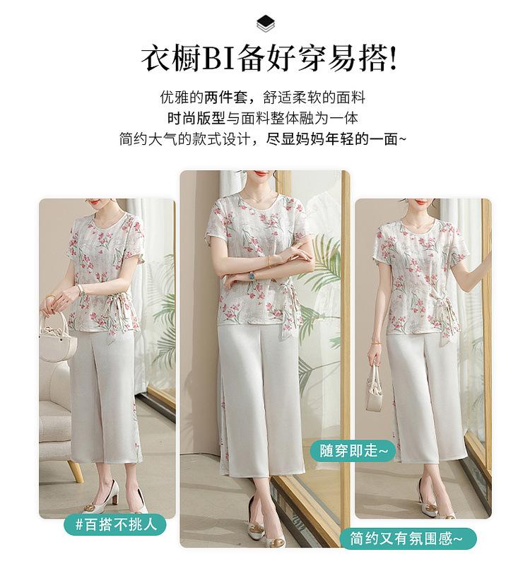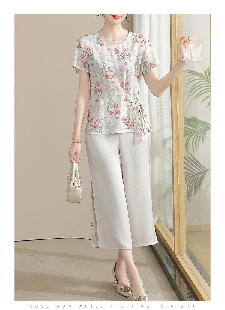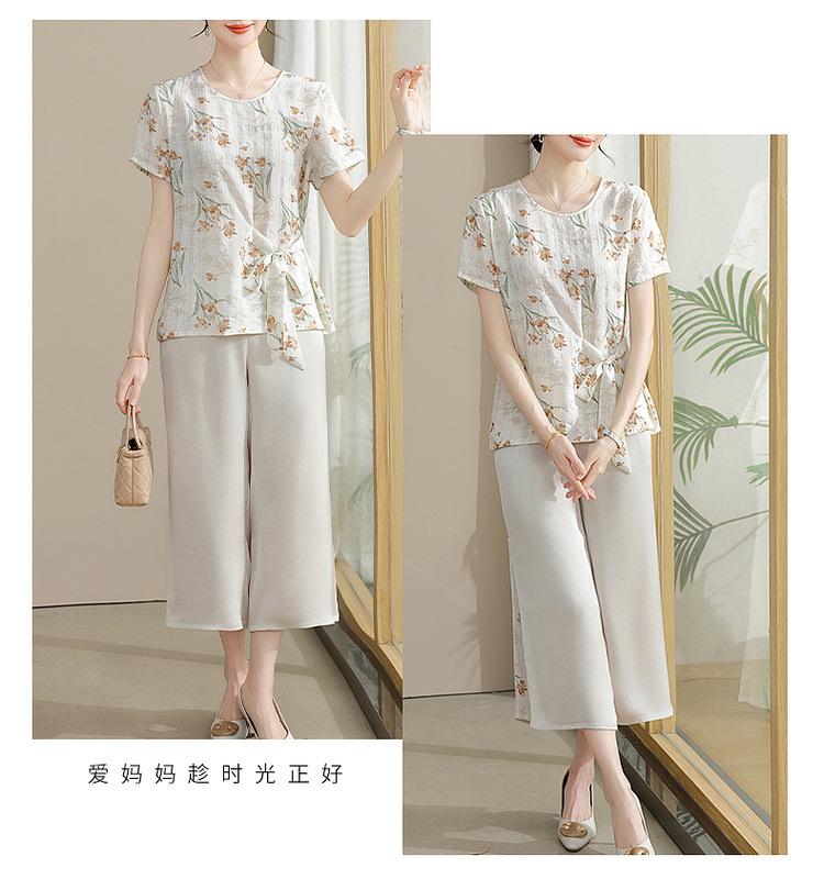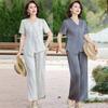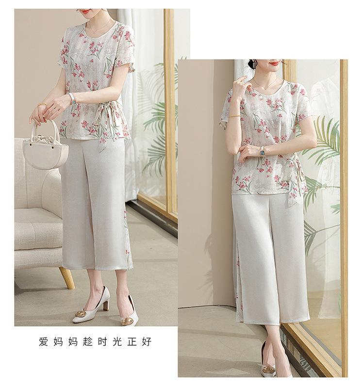 Conjunto de Verão da Mamãe 2025 Novo Estilo Tops Casuais para Mulheres de Meia-Idade e Idosas Verão Conjunto Fino de Duas Peças