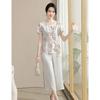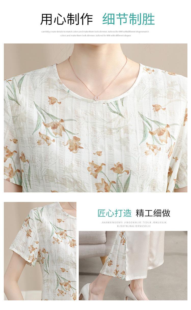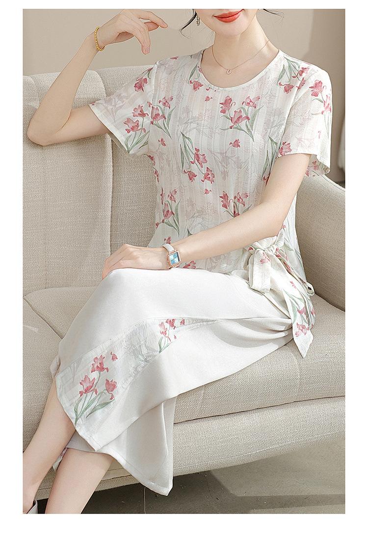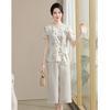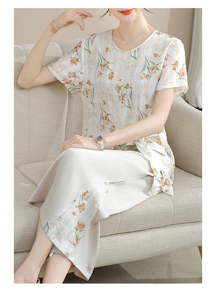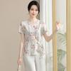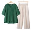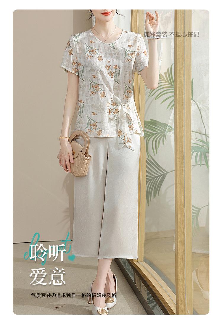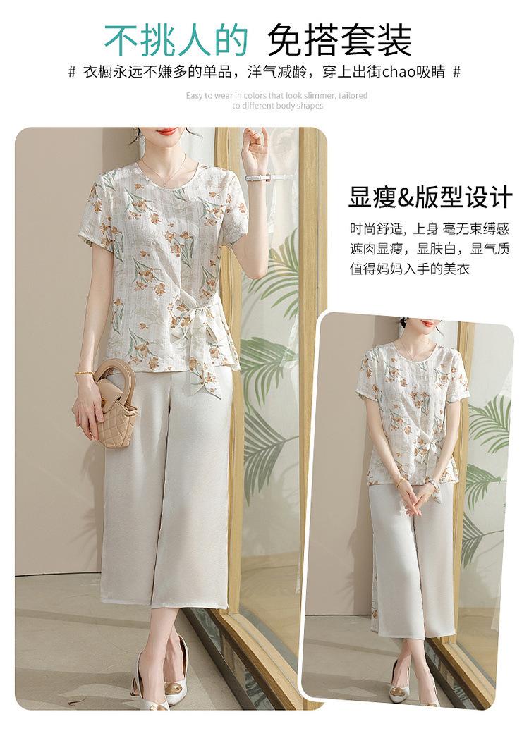 Conjunto de Verão da Mamãe 2025 Novo Estilo Tops Casuais para Mulheres de Meia-Idade e Idosas Verão Conjunto Fino de Duas Peças