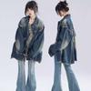 Casaco Jeans Curto com Botões Dourados Distintivos Europeus 2025 Primavera Feminino Slim-fit Estilo Estrangeiro Gola POLO Top Jeans