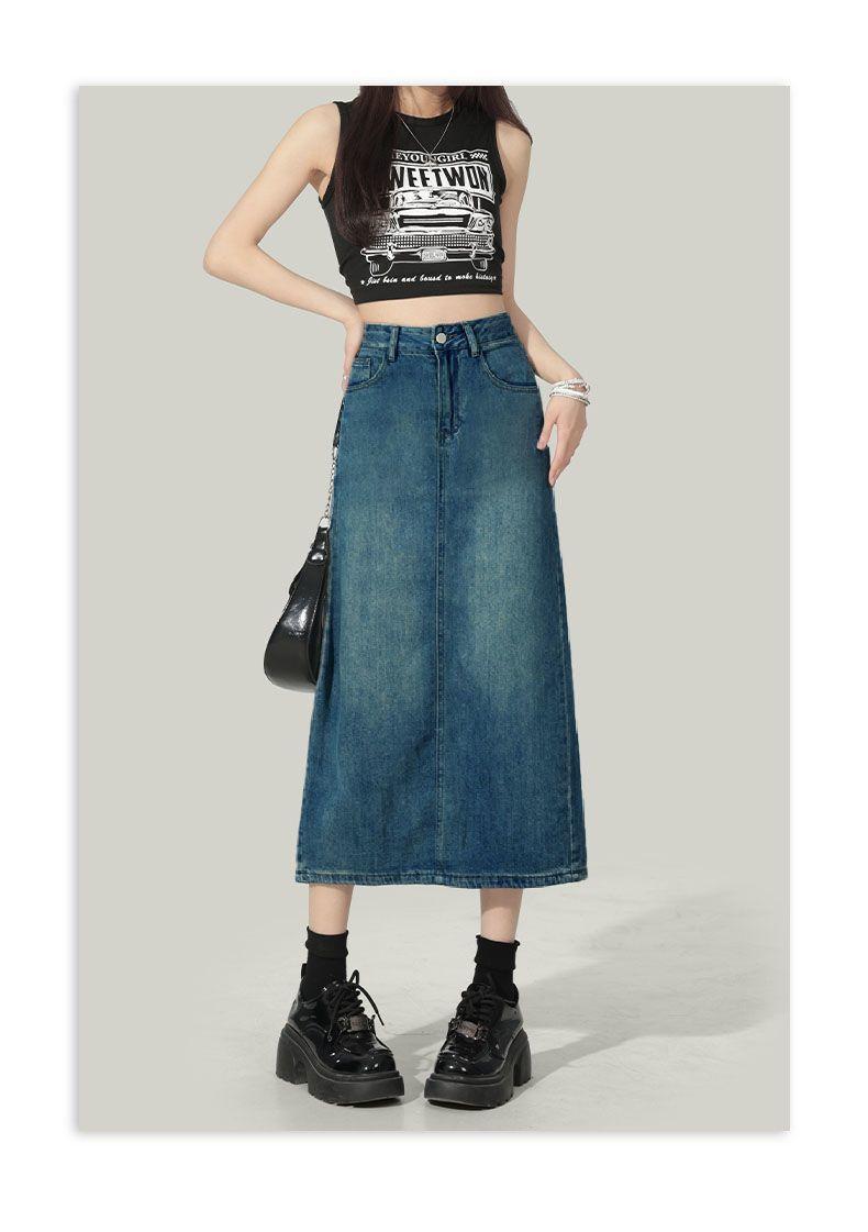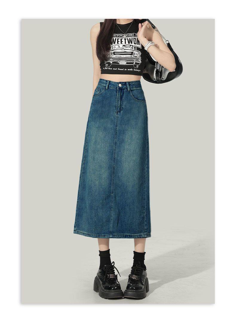 Nova Saia Cintura Alta Justa ao Quadril para Mulheres Baixinhas, Saia A Casual, Saia Jeans Versátil, 2025 Que Afina a Cintura