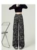 Design Retrô de Cintura Alta Vibe Sexy High Street Jeans Camuflados para Mulheres, Look Solto Emagrecedor e Calças Versáteis Retas de Perna Larga