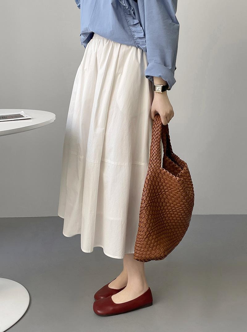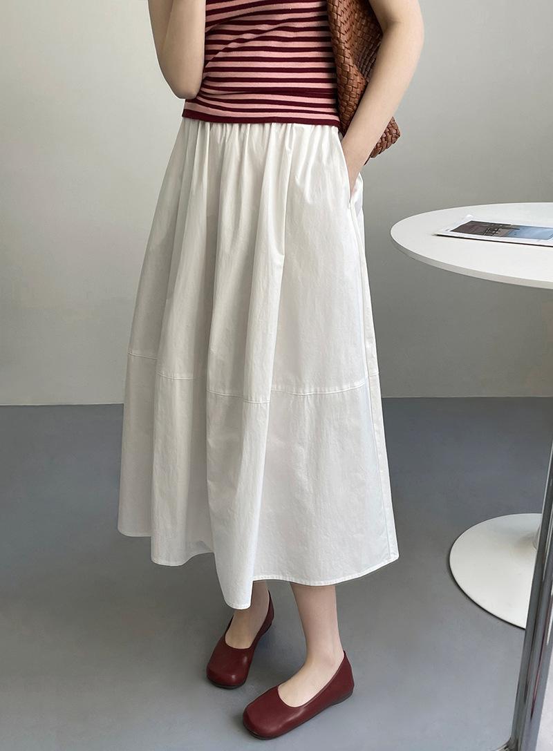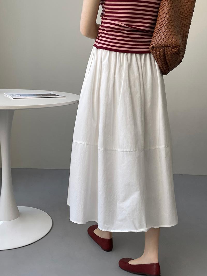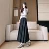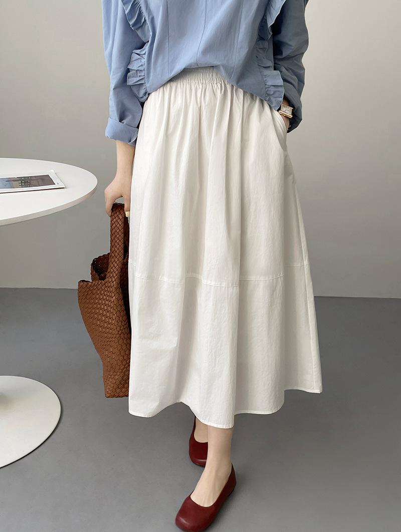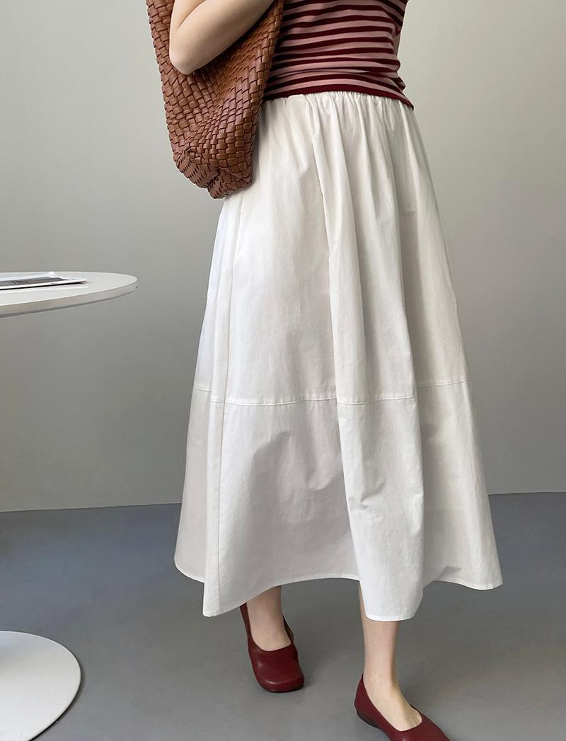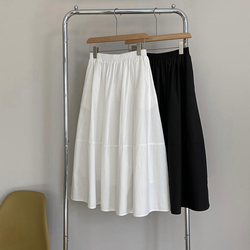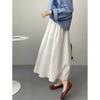 Saia Midi Pregueada Linha A Branca Feminina 2025 Verão Nova Emagrecimento Cintura Alta Drapeada Cobrindo o Quadril Saia Guarda-Chuva
