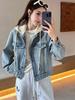 Jaqueta Jeans Rosa Curta 2025 Novo Estilo Coreano Preguiçoso Vestido Feminino com Estilo Leve e Maduro para Senhoras