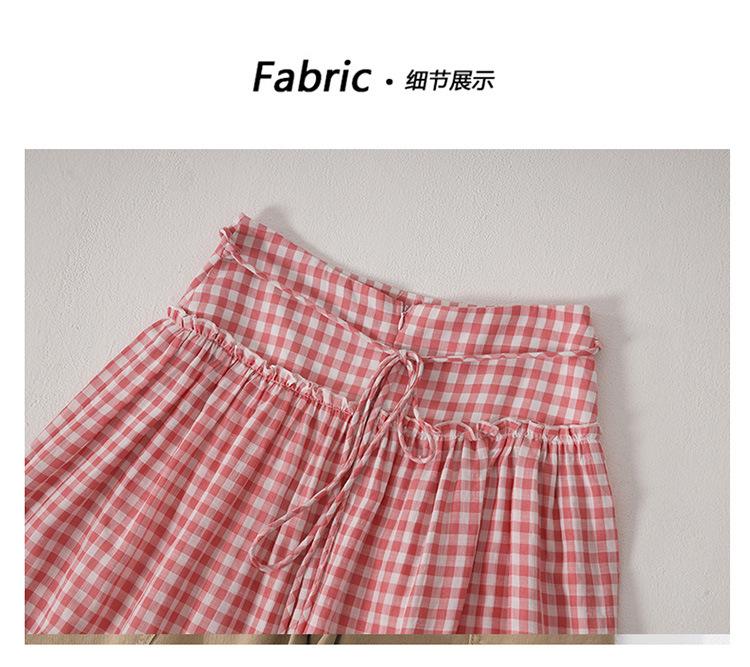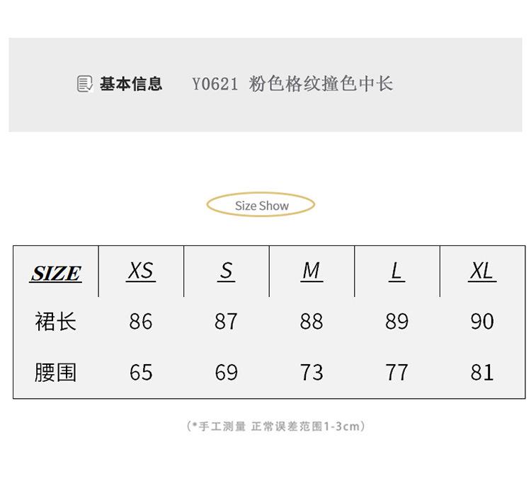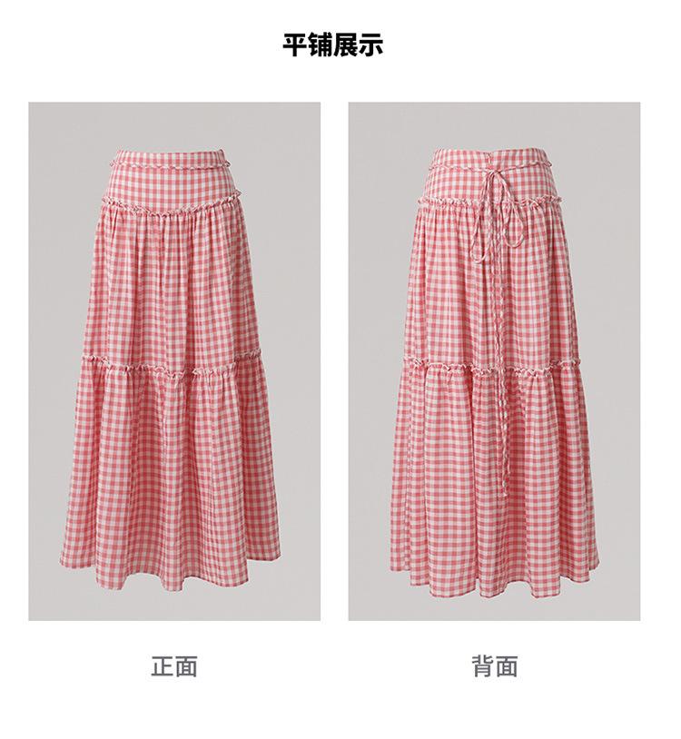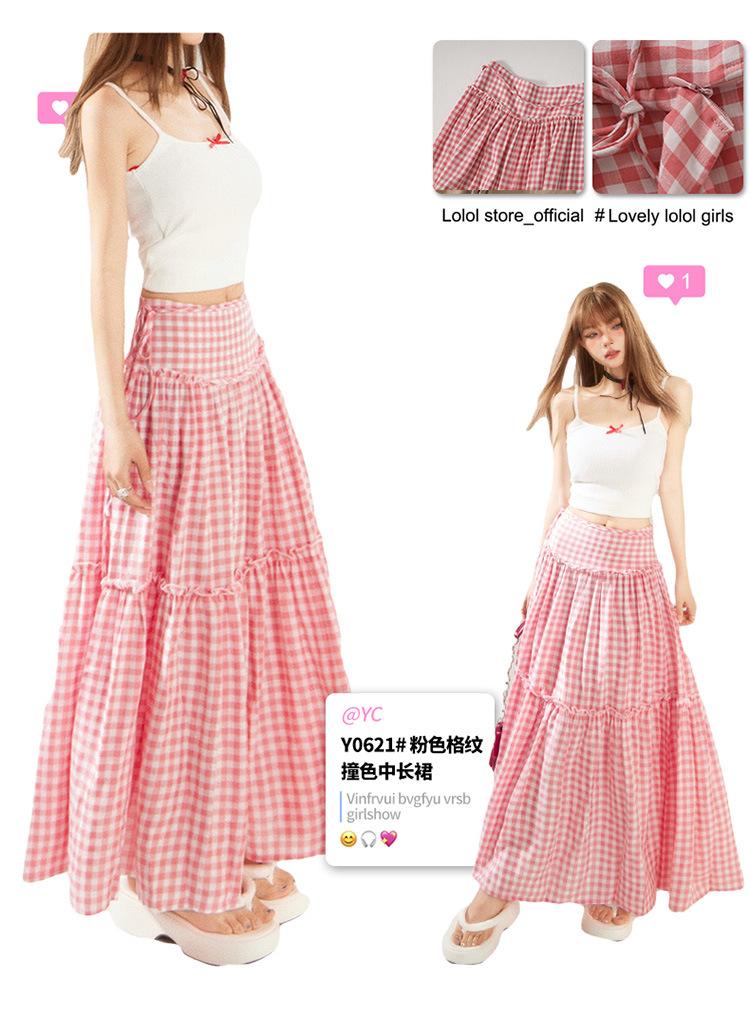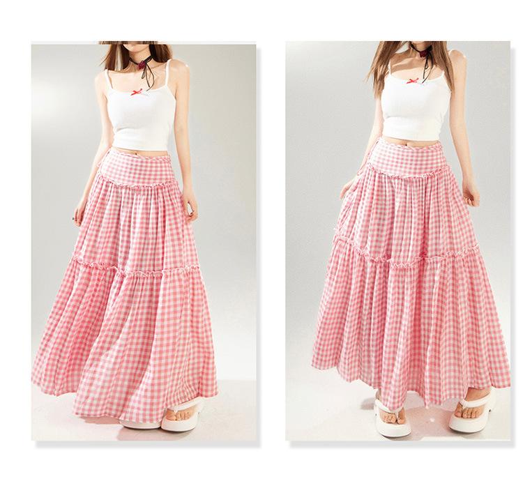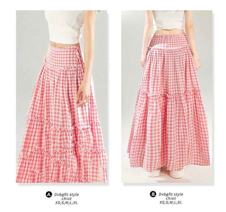 Compre YC & Saia Plissada Bufante com Costura de Cintura Alta Retrô Saia A-line Xadrez Rosa Versátil Casual Saia Longa Primavera e Verão no atacado no Joom.pro