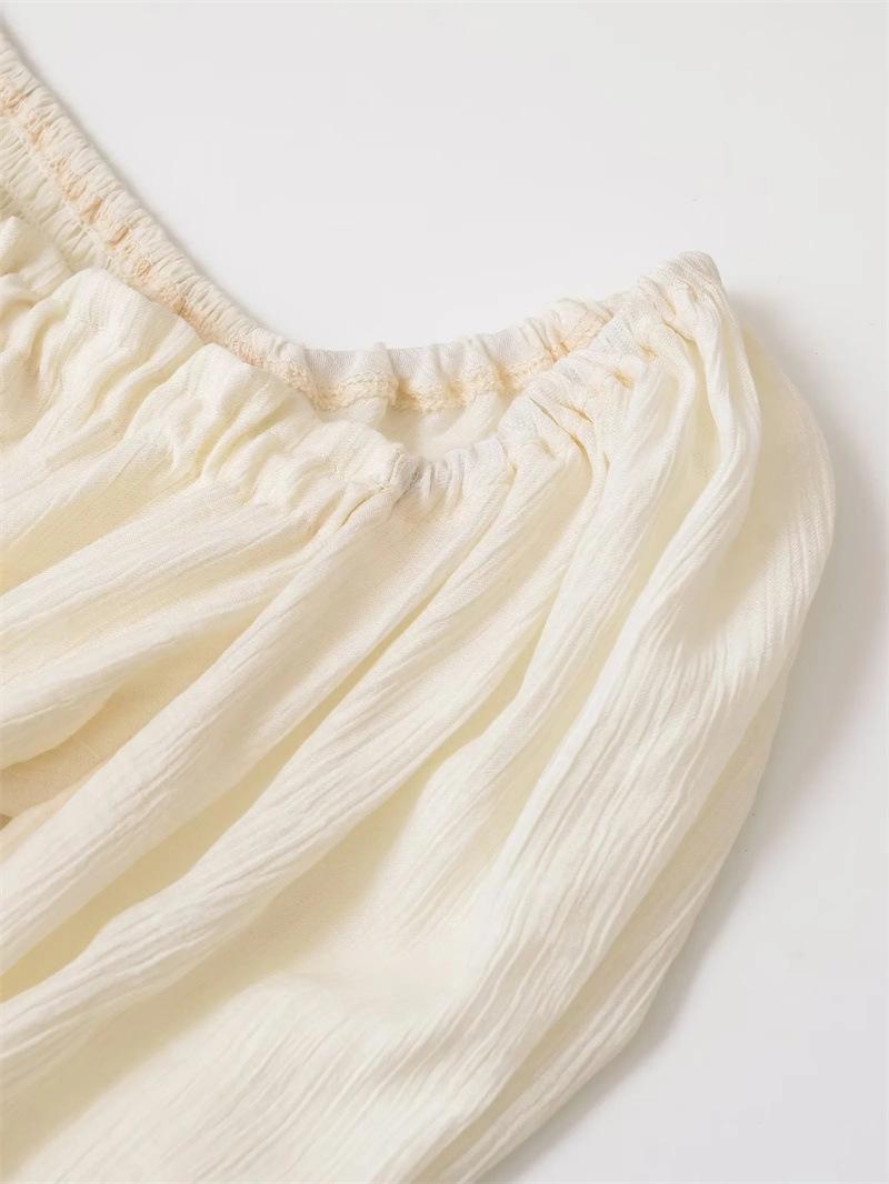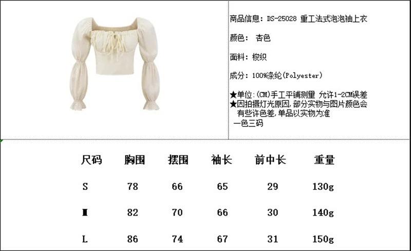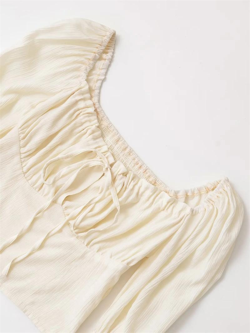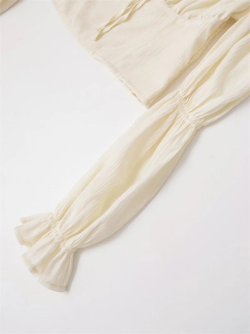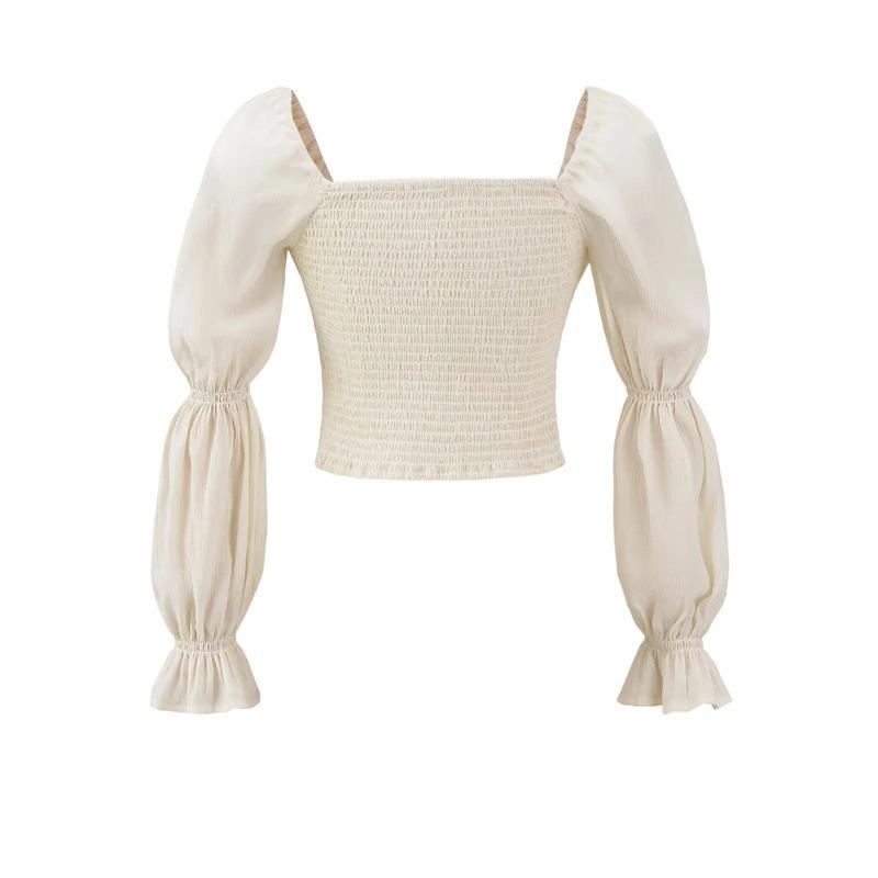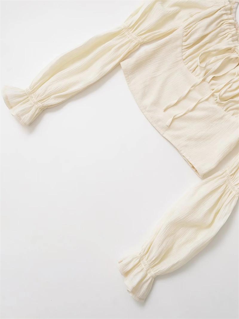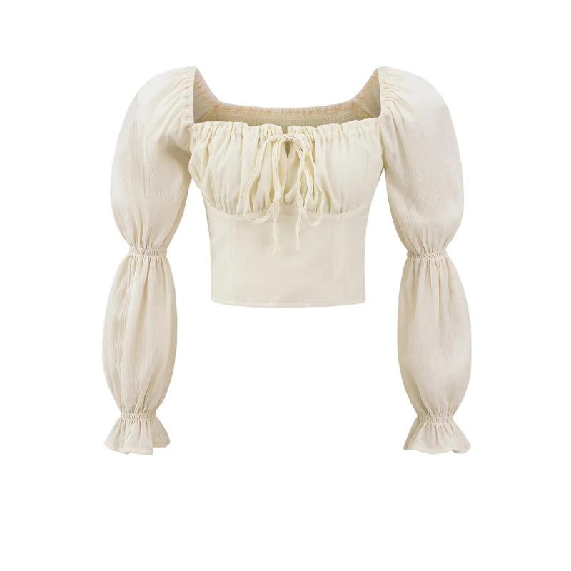 Camisa Doce e Picante Estilo Francês Suave de Bolhas de Manga Comprida para Mulheres Verão 2025 Novo Colarinho Quadrado Ajustada Top Curto com Cordões