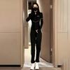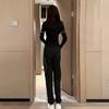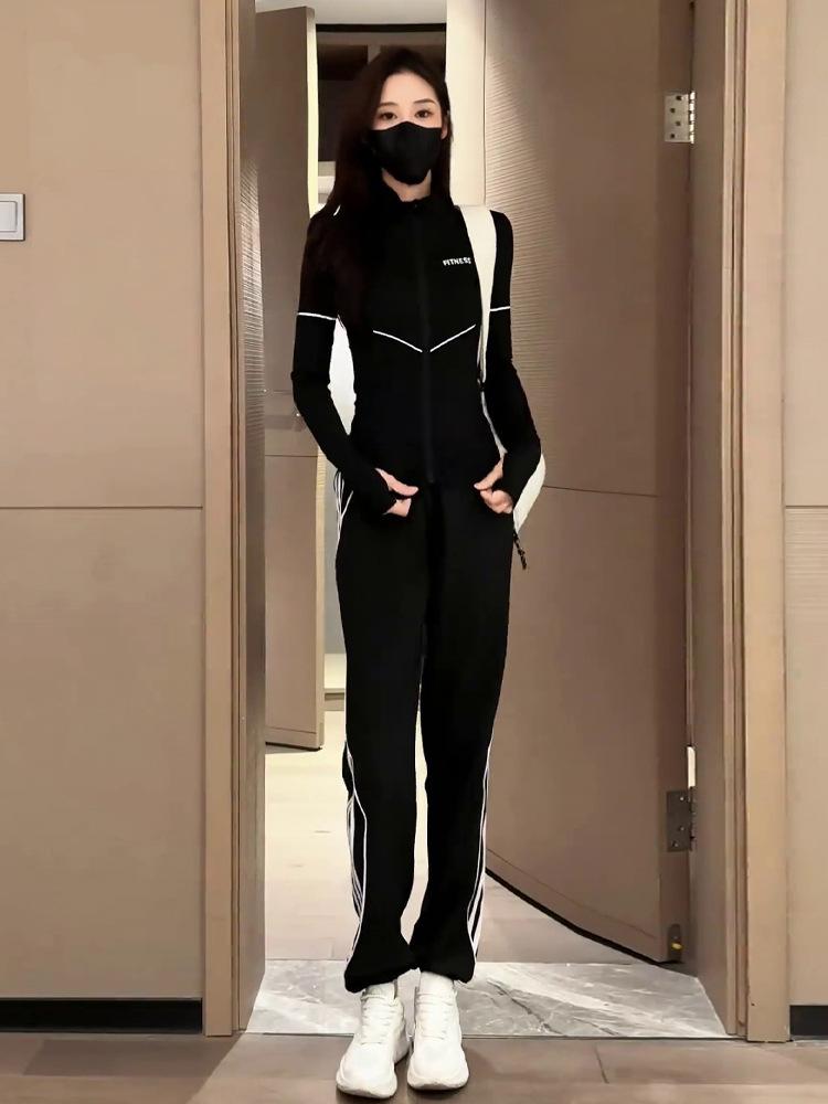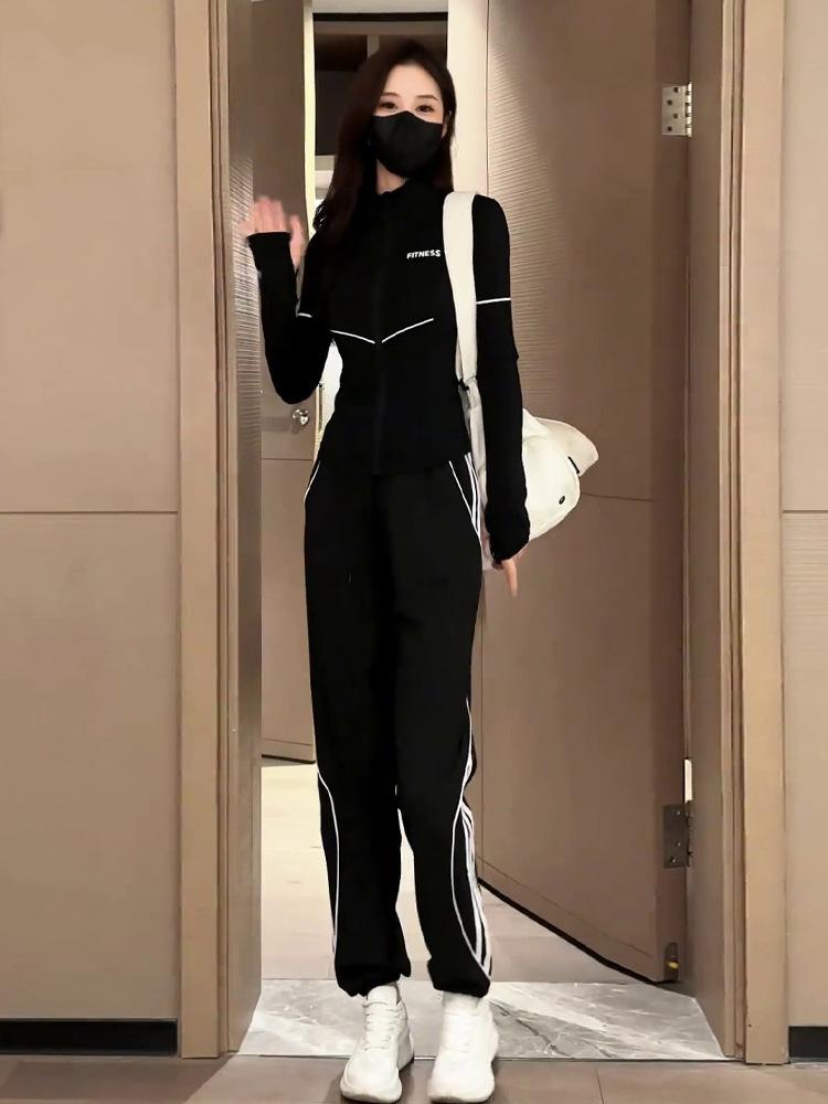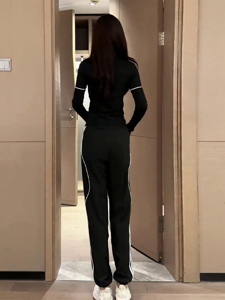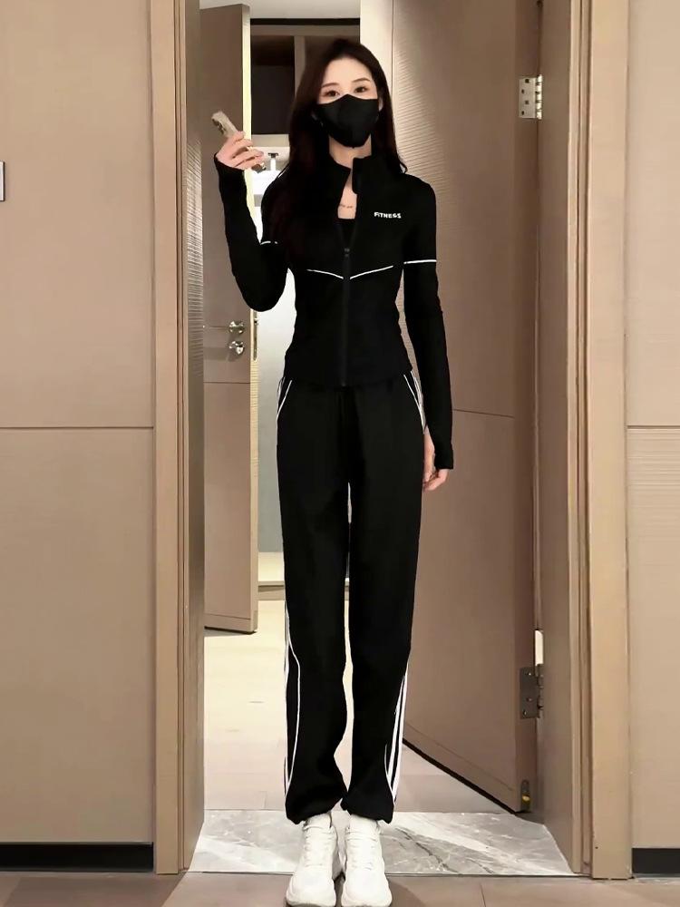 Conjunto esportivo europeu feminino primavera e outono 2025 nova moda estilo ocidental design slim fit roupa de corrida duas peças slim