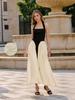 Vestido Elegante Feminino Socialite Europeu e Americano Transfronteiriço Ajustado Costura Preto e Branco Sem Mangas Gola Halter Vestido Longo com Gola de Vestido