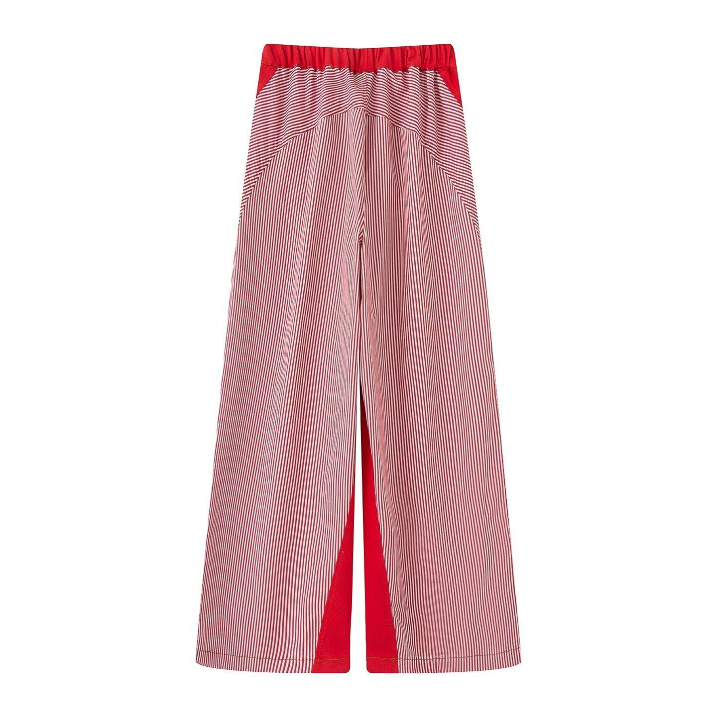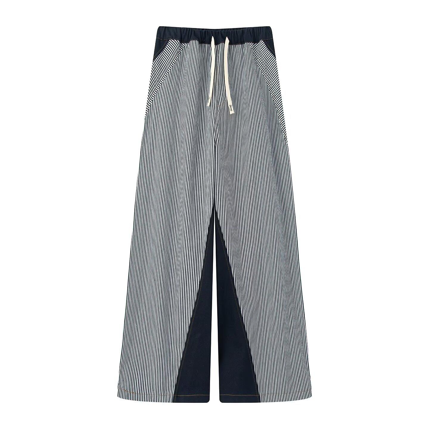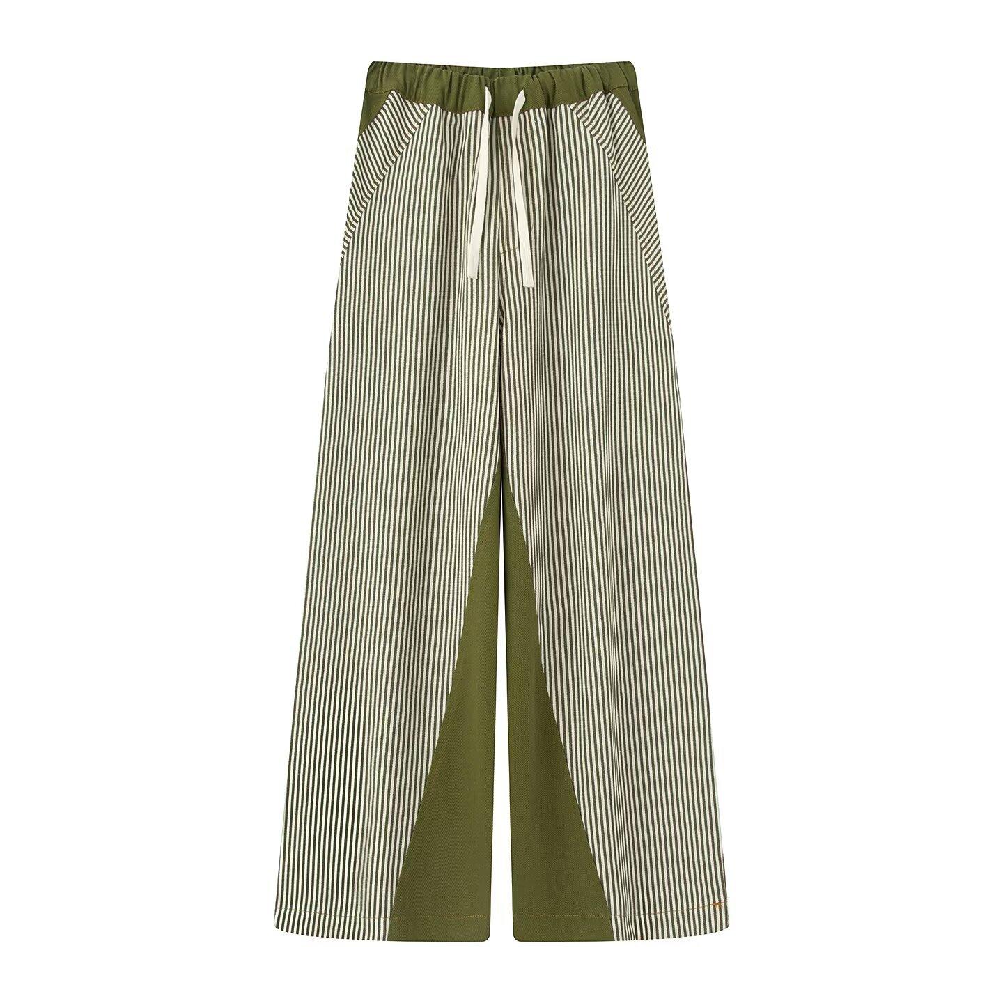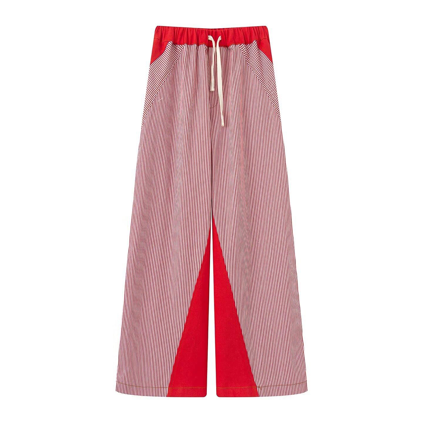 2025 Nova Roupa de Verão Feminina Estilo Europeu e Americano Moda Casual Solta Combinação de Cores Calças Slim Retas Drapeadas