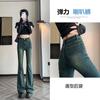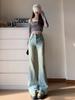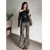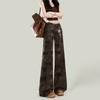 Jeans Camuflados de Cintura Baixa e Corte Slim Micro-Evasê para Mulheres Primavera 2025 Novo Americano High Street Calças Slim Comprimento Chão