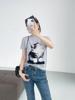 Verano 2025 Nueva Camiseta Niche de Dibujos Animados con Estampado de Gato Moda Casual Combinable Ajustada Manga Corta Top