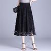 Verão Cintura Alta Ajuste Slim Verde Fresco Estampado Elegante Casual Estampado Verde Grande Roda Saia Midi Fenda Lateral